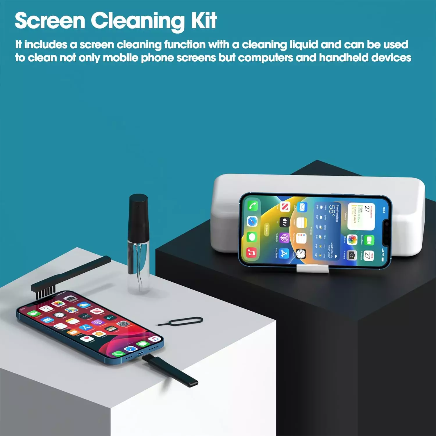 - 【Screen Cleaning Helper】Equipped with an empty spray bottle(3ml), fill in cleaning liquid and spray some on the screen(phone, tablet, PC monitor) . Use the fiber cloth on the back of the lid to wipe the screen to easily remove oil stains and fingerprints. The air blower can easily blow away the dust on the surface of device. The lens cleaning pen with soft pad can clean the stains on the lens of phone and camera. The card pickup pin for removing the SIM card easily.