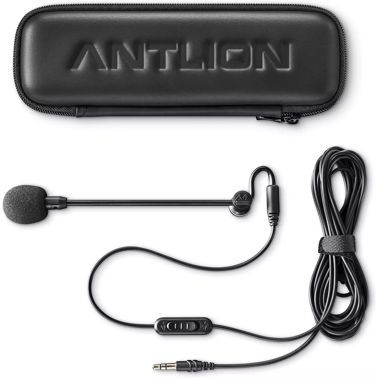 - WHAT’S INCLUDED: One Antlion Audio ModMic Uni 2 with pop filter and an integrated 2 meter cable, hard storage/travelling case, 1 top clasp, 2 award-winning patented neodymium N45 magnetic base clamps, 5 cable clips, additional adhesive, an alcohol pad to prep your headphones and a user manual.