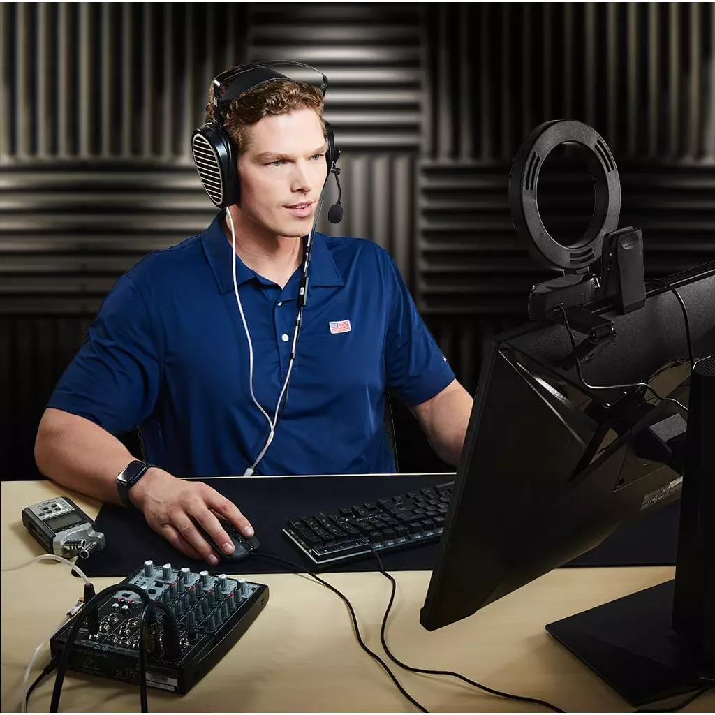- [Monitoring and Volume Adjustment] The podcast mic ability to 3.5mm jack real-time monitoring along with headphone volume control are added bonuses to recording professionals standing out studio podcasting. Monitor if your output voice as intended or noise reduction effect, and directly set the monitoring volume on the streaming mic to listen to each frequency audio. The PC microphone for recording is more accessible for voice-over work. (Only available for USB connection)