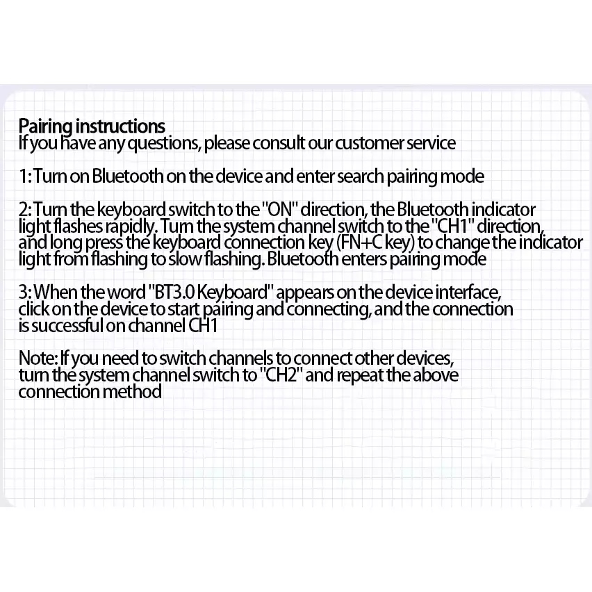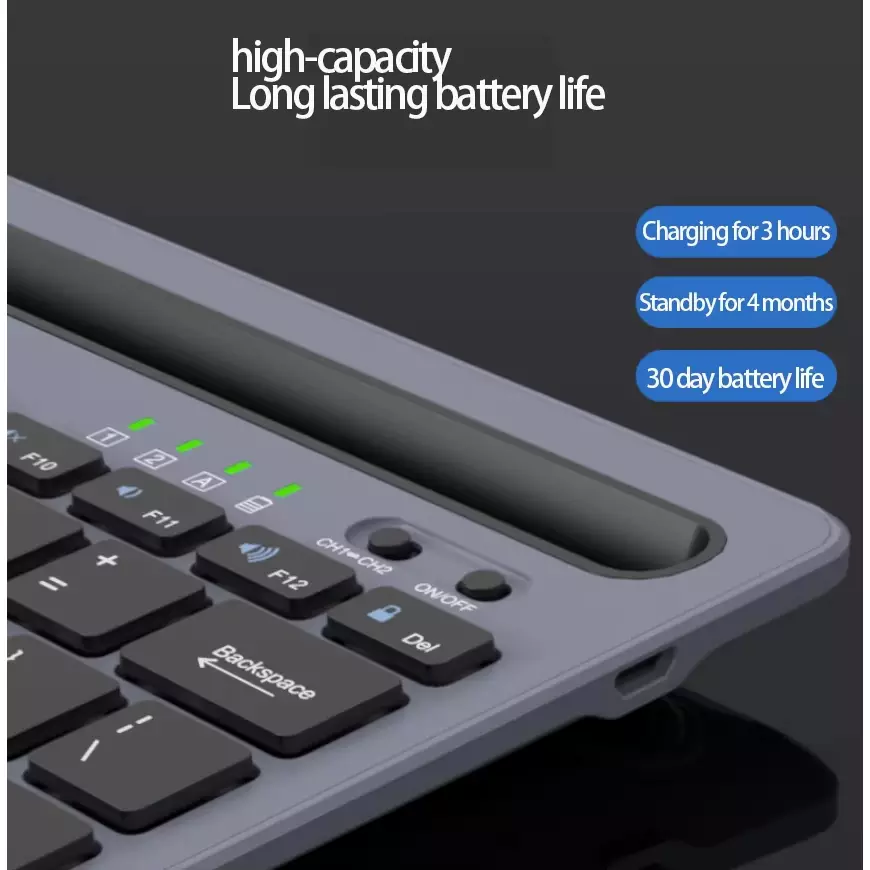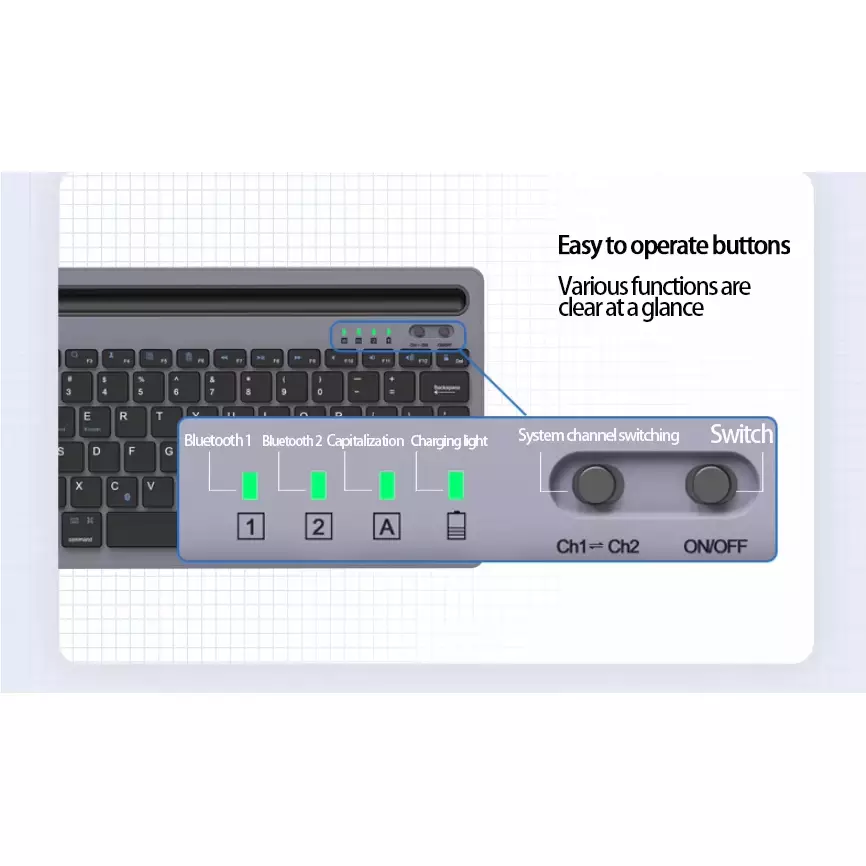 - 【Switching Between 2 Devices】: This wireless Bluetooth keyboard can quickly switch channels between 2 devices without any interference. After the two devices are linked successfully, you can press the ch1-ch2 buttons to switch devices.