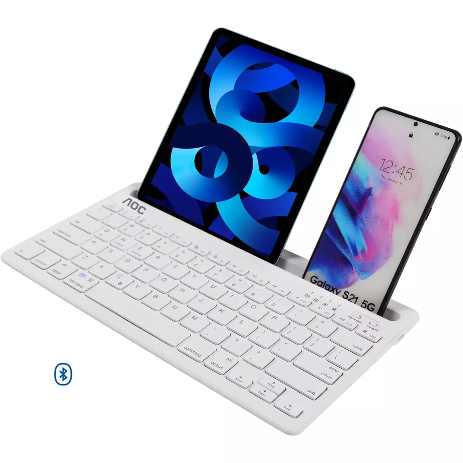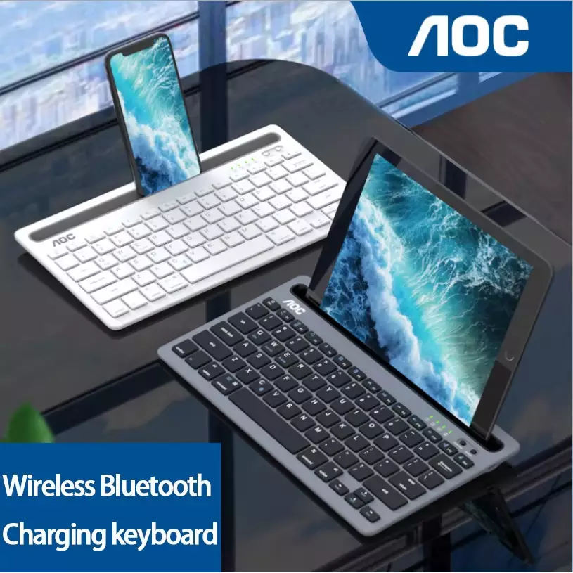 AOC KB701 Wireless Bluetooth Keyboard with Integrated Stand, Support Multi Devices for iPhone/iPad/Tablet/PC, 78Keys Rechargeable Silent Portable Keyboard Stand Slot for Windows/Android/iOS/Mac OS (White)