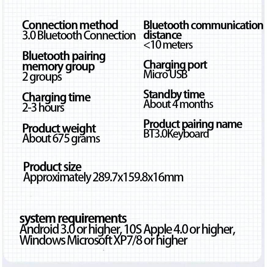 - 【Rechargeable & Auto-Sleep】: This wireless keyboard with a mobile phone holder has an independent switch and smart auto-sleep function designed to save power. Built-in rechargeable lithium-ion battery, fully charged in 3 hours, can work continuously for more than 80 hours and has a standby time of 6 months.