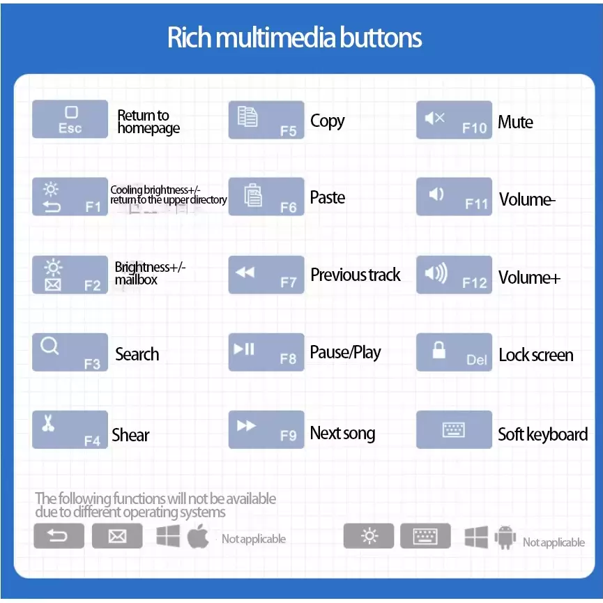 - 【Multifunctional & Wide Compatibility】: This wireless Bluetooth keyboard is compatible with Windows, Mac, iOS, Android and other Bluetooth-enabled devices.. The 78 keys keyboard has multiple function keys, so you can quickly switch to the interface you want, very convenient.