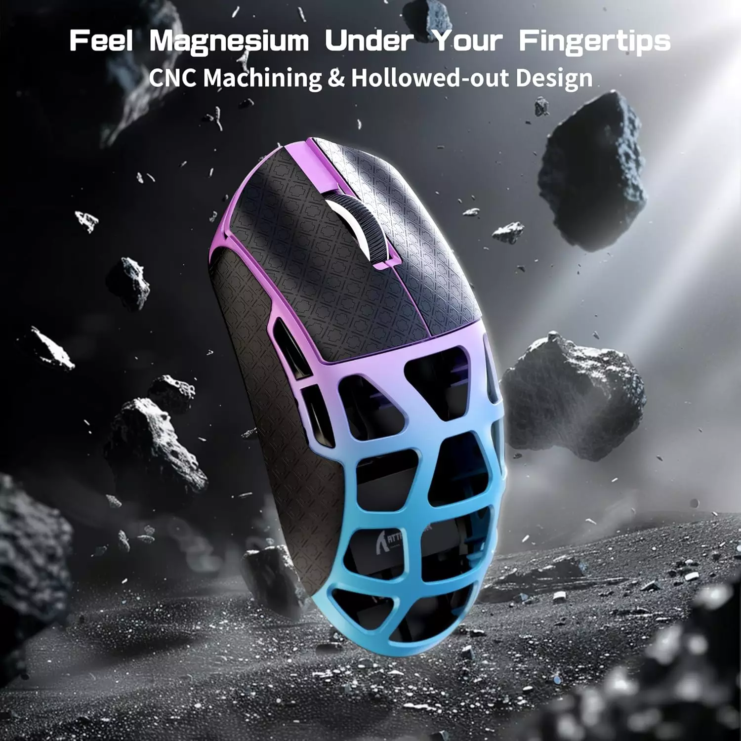 - Magnesium is the lightest metal material for structure. The R3 adopts this premium metal while crafted with a CNC-integrated metallic frame for perfect visual appeal and great comfort. And don’t overlook the hollowed-out design, not only lending the mouse a unique aesthetic but also guaranteeing optimal airflow, ensuring your grip stays cool even during the most intense gaming sessions.