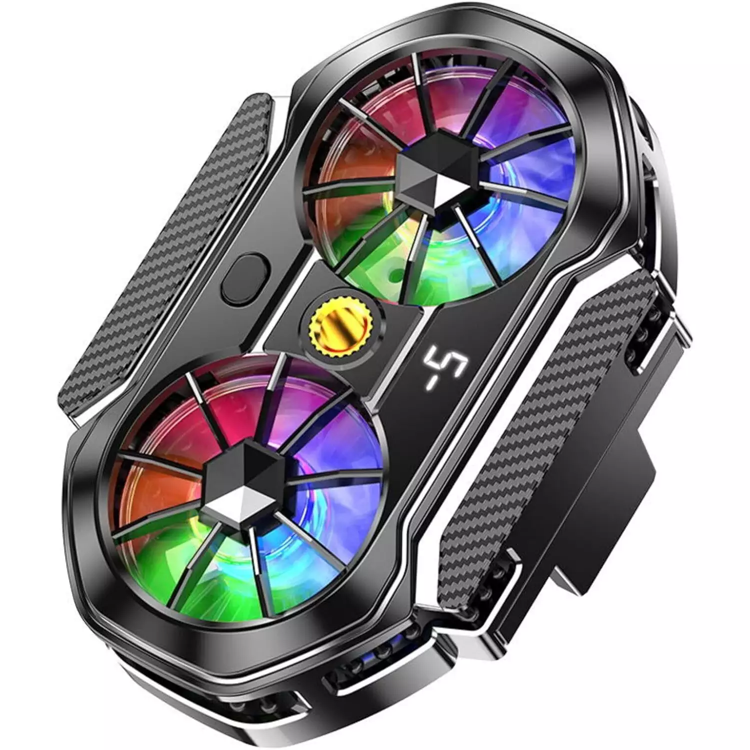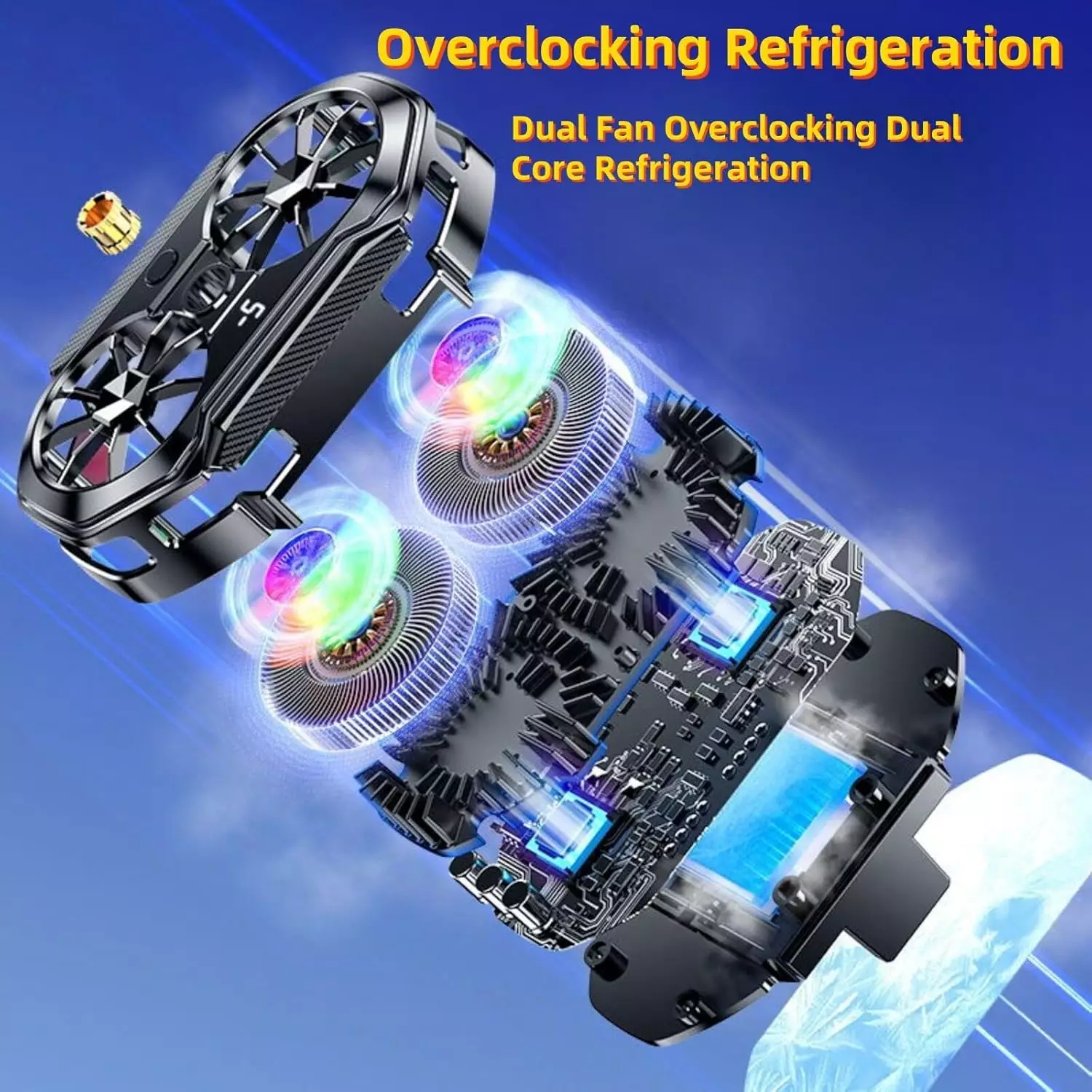- Dual Fan Cell Phone Cooler:Cell Phone Cooler Is Made Of Lightweight Material, Easy To Carry Around. Compact Appearance Design, Won’t Block Your Fingers When Playing Games, Input 5v/3a, Built-In Turbo Fan, Dual Fan Cooling Air Path, Extra Large Cooling Surface,Rgb Lighting, Three-Position Mode Switching, With Digital Display.With Live Nut As Well As Universal Head, More Perfect With Live Bracket Use, Live Good Companion