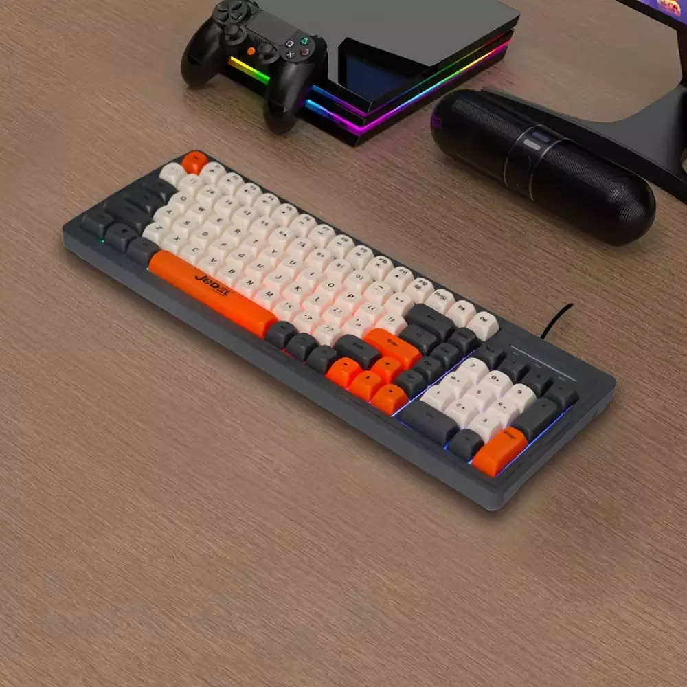 Jedel K32 RGB Multimedia Keyboard Silent Wired USB (Arabic/English key) – RGB backlit effects With Side Lighting – Waterproof 104 BPT keys For Gaming/Business/PC/Win