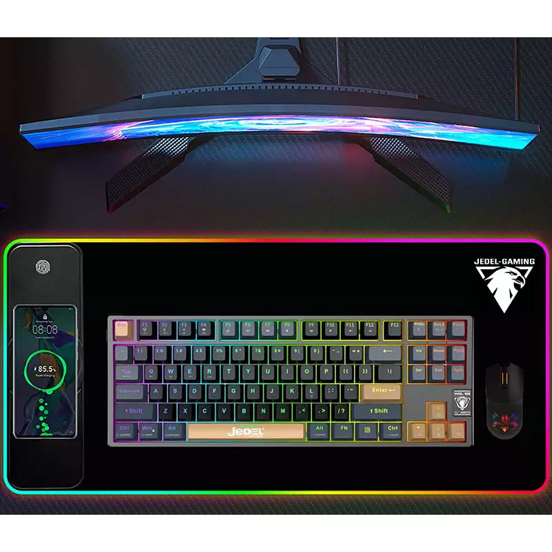 Jedel WKL102 3-Mode Wireless, Bluetooth, Wired Gaming Mechanical Keyboard – Hotswapple Blue Switches – Full Keys Anti Ghosting