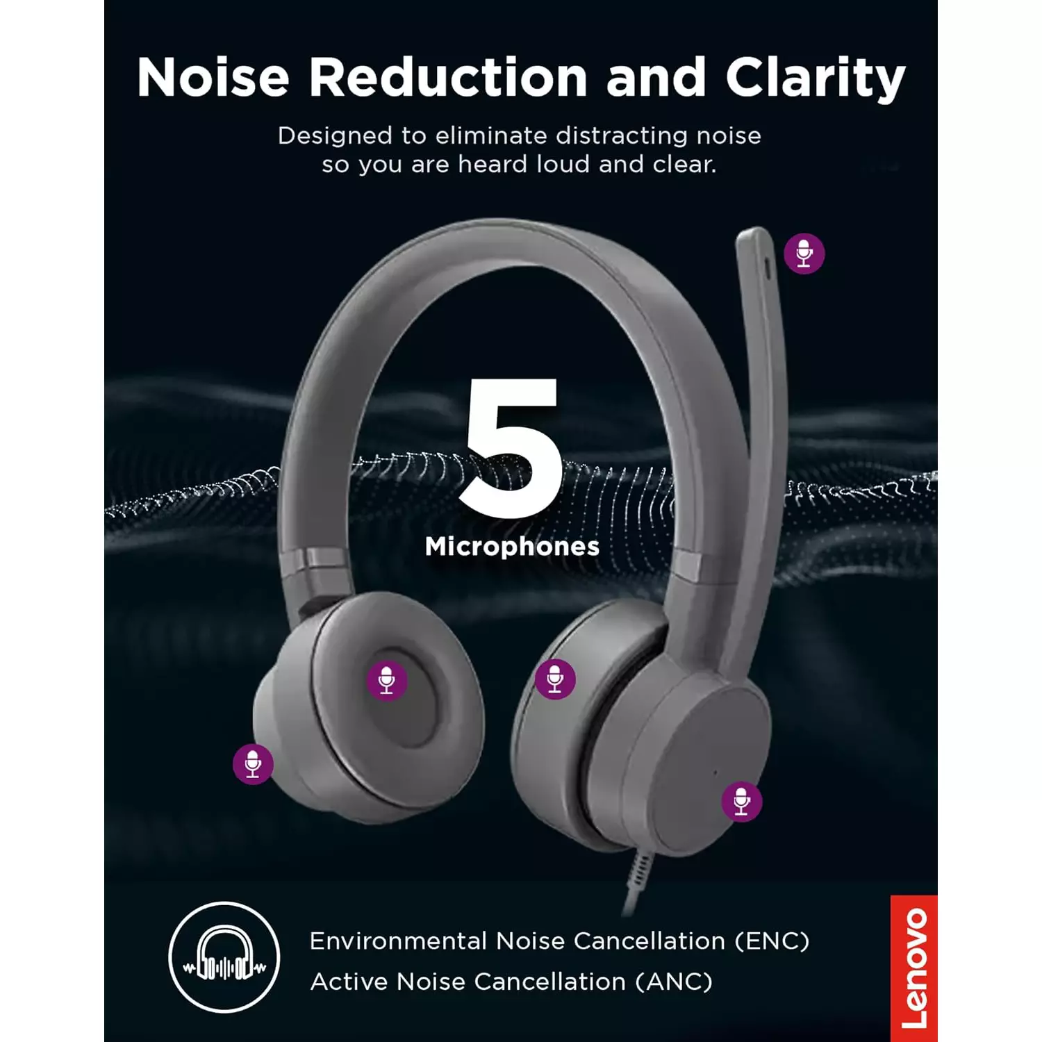 Lenovo Go Wired ANC Headset – USB-C Headphones – Active Noise Cancelling – Rotatable Boom Mic – Certified for Microsoft Teams