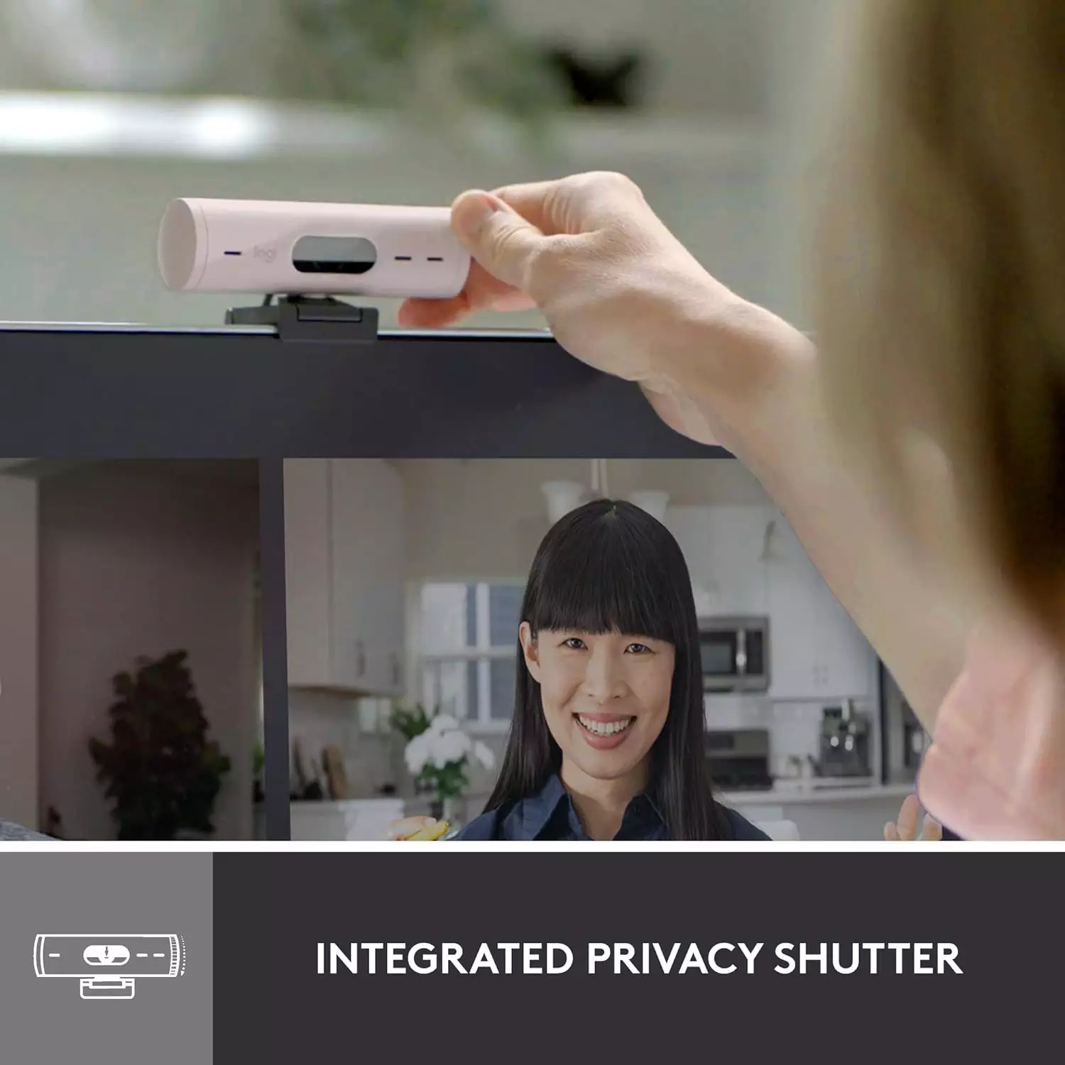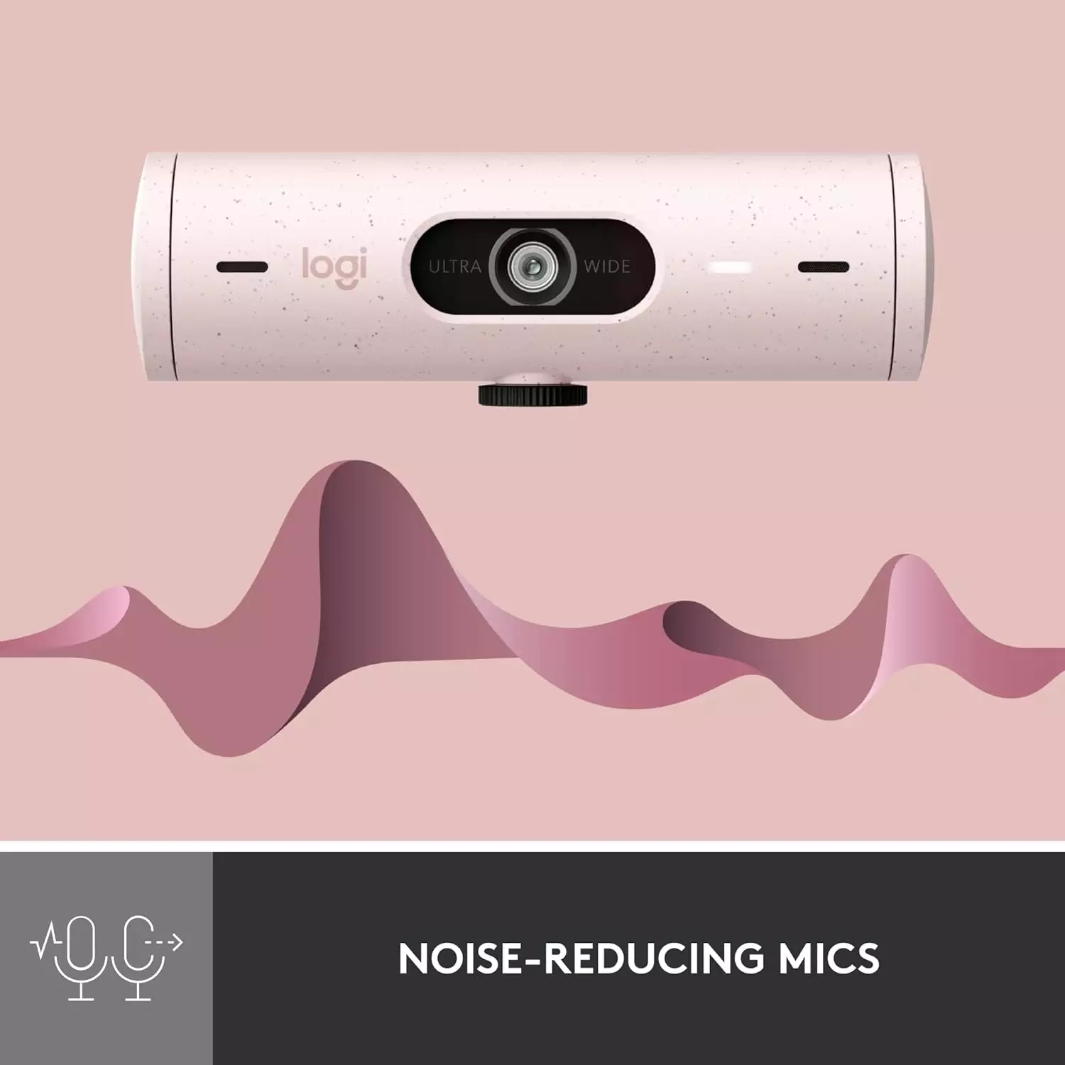 Logitech Brio 500 Full HD Webcam with Auto Light Correction,Show Mode, Dual Noise Reduction Mics (Rose)