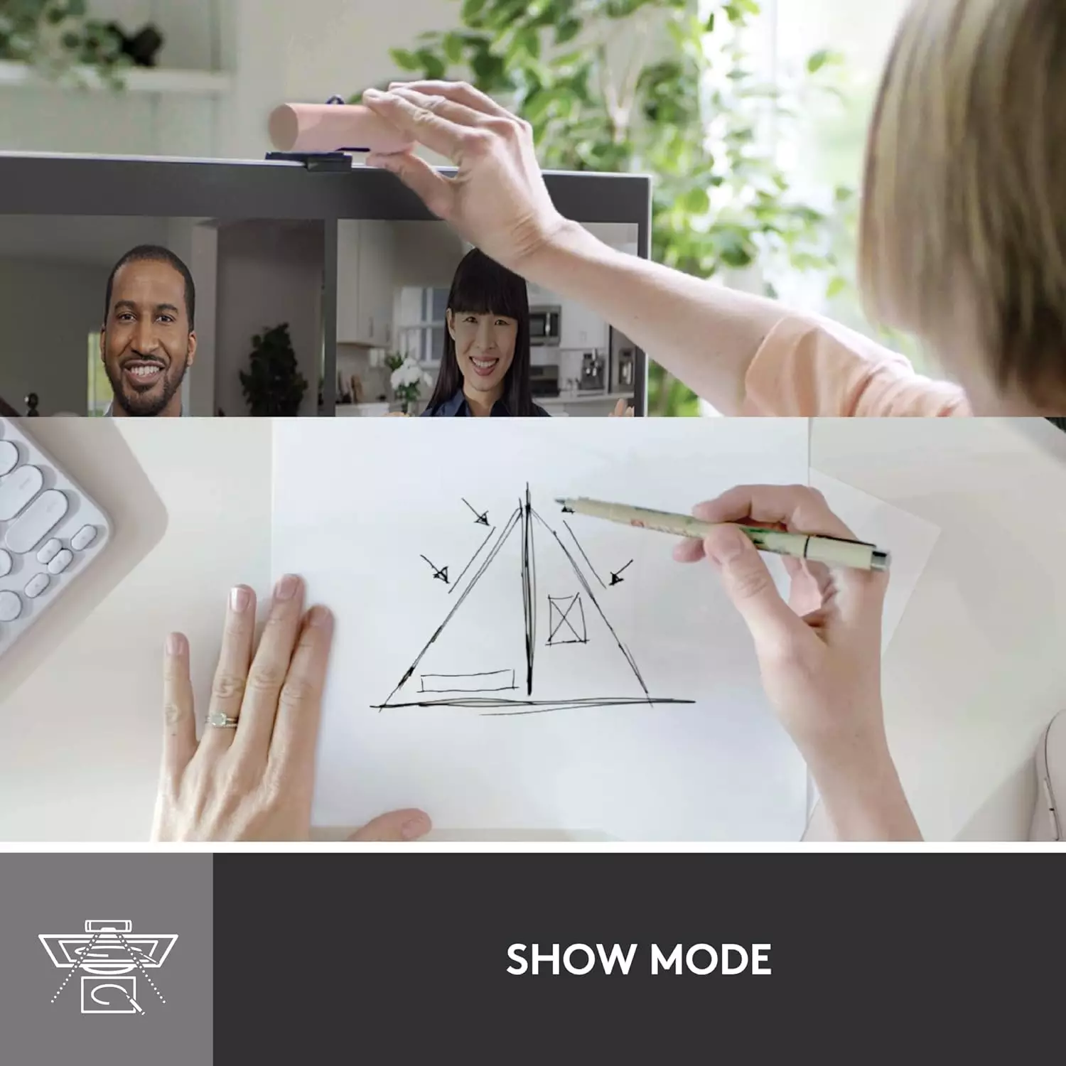 - Show Mode: Present your work or other objects on your desk with Show Mode, which lets you tilt the web camera up or down with one hand