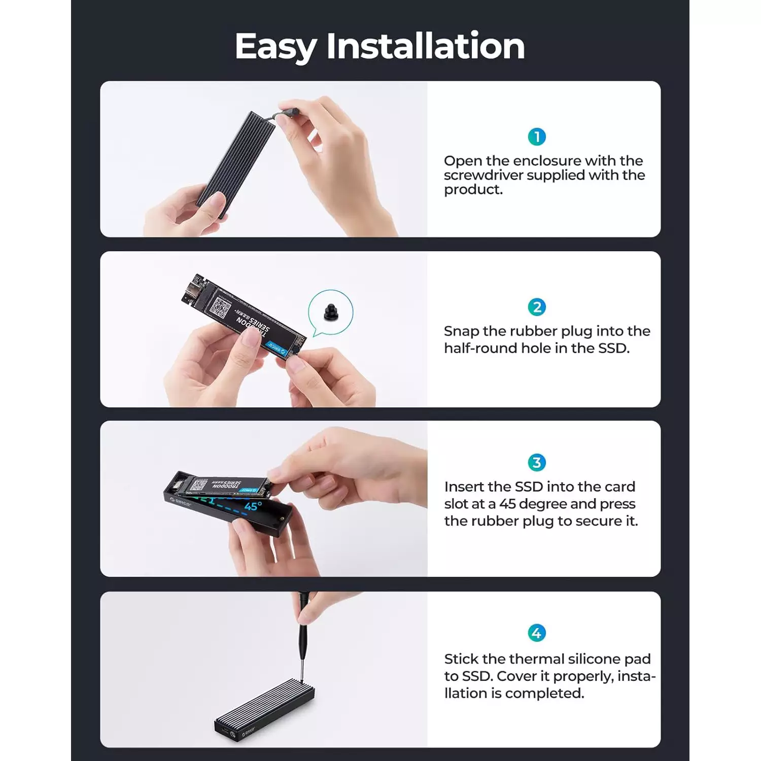 - MORE DETAILS : The M.2 USB case has an indicator to show the working status of the solid-state drive. ORICO provides 7 x 24-hour e-mail technical support. If you’re not completely satisfied with your purchase, please feel free to contact us