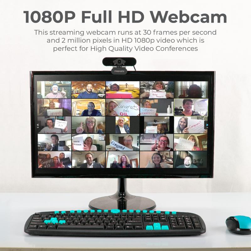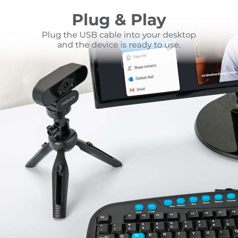 Promate ProCam-2 Full-HD 1080p WebCam – Auto Focus with Built-In Mic – With Tripod