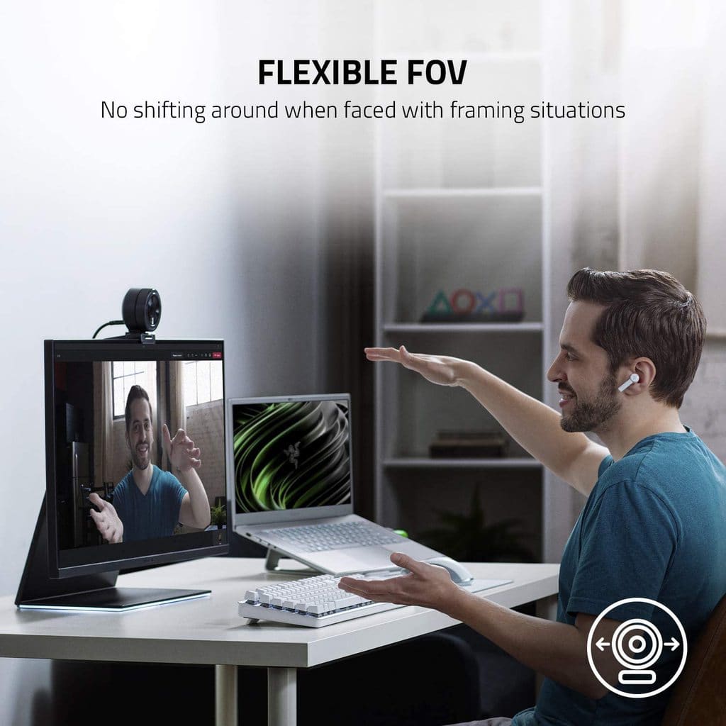 Wide-angle lens with adjustable FOV to control how much to capture for your audienceFind the right amount of visual space you need to display your showmanship, with a large aperture, wide-angle lens that allows for three field-of-view options selectable via Razer Synapse. | Lightning-fast USB 3.0 to support uncompressed video qualityWith its plug-and-play USB 3.0 connection, the Razer Kiyo Pro delivers a powerful 5GB/s camera signal to your stream, allowing for maximized video performance with no compression whatsoever. | Flexible mounting options for ideal webcam placementThe stable webcam mount sits snugly on your monitor and can be tilted up or down to find the perfect angle, but can also be detached if you prefer the webcam to be on a tripod setup. |
