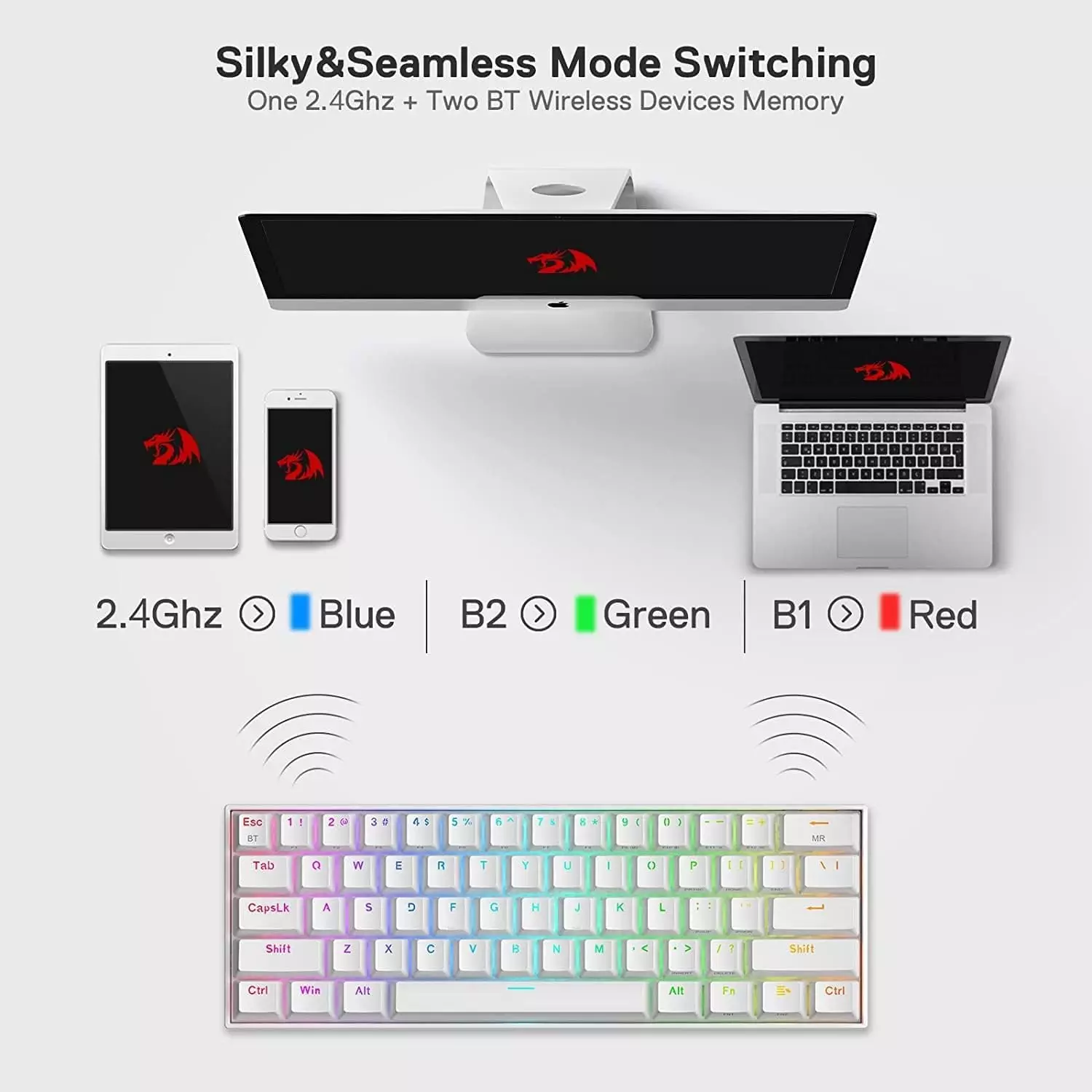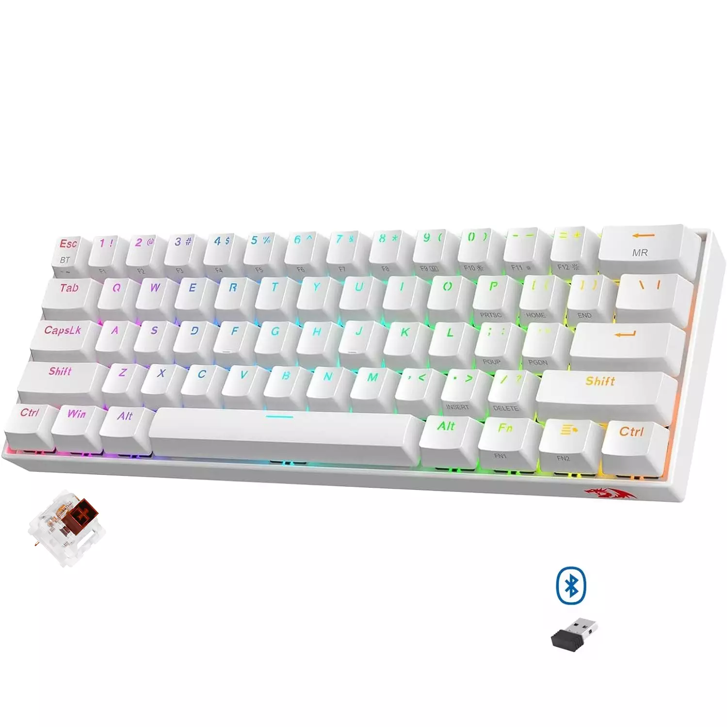 REDRAGON K530W Draconic PRO RGB 60% Gaming Wireless,Bluetooth & Wired Mechanical Keyboard Brown Switches (White)