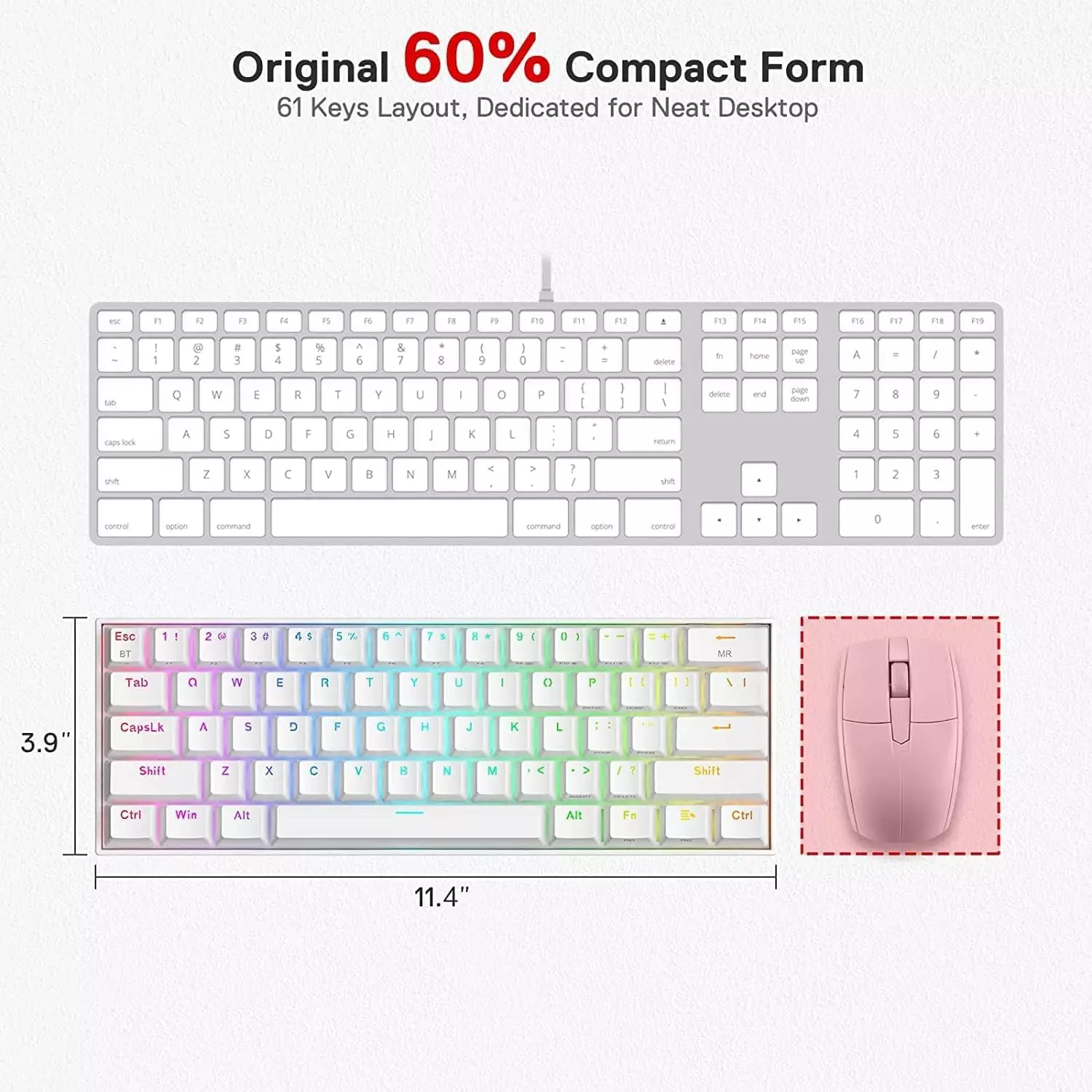 - 🎮 Gamers' Delight: Dominate your competition with our ultra-compact, 61-key layout keyboard. All the essential functions you need, ingeniously condensed into a minimalist design. Maximize your gaming space while maintaining peak performance. This is the preferred choice of FPS gamers for their 60% gaming needs.