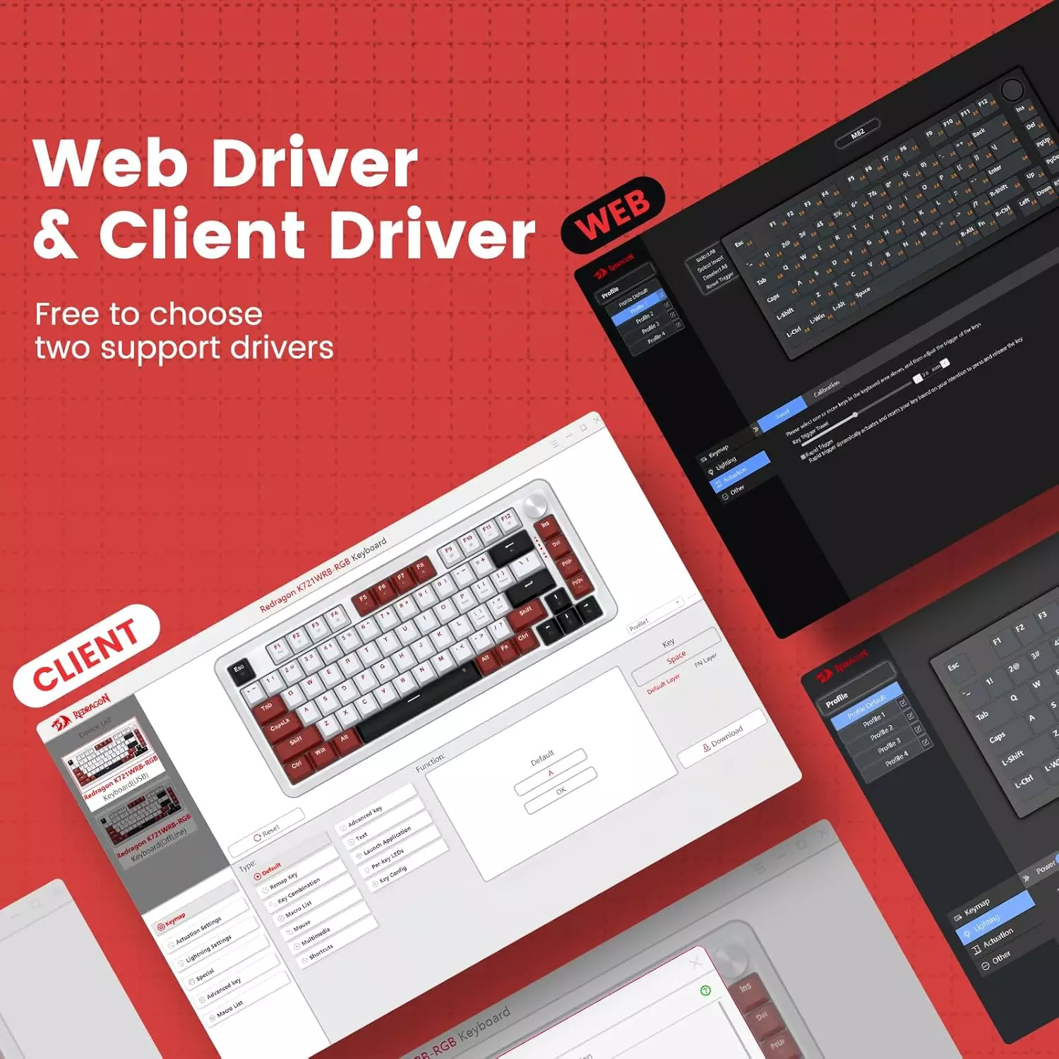 - 【Support Web Driver & Client Driver】K721 Red Dragon Keyboard supports dual drivers, not only the common client driver but also the web driver, you can calibrate the keys through the driver, as well as for free adjustment of the touch point of the keys (0.1mm-4mm), as well as customize the keyboard lighting and so on. (Client address: redragon.com; Web address: illumipc.com)