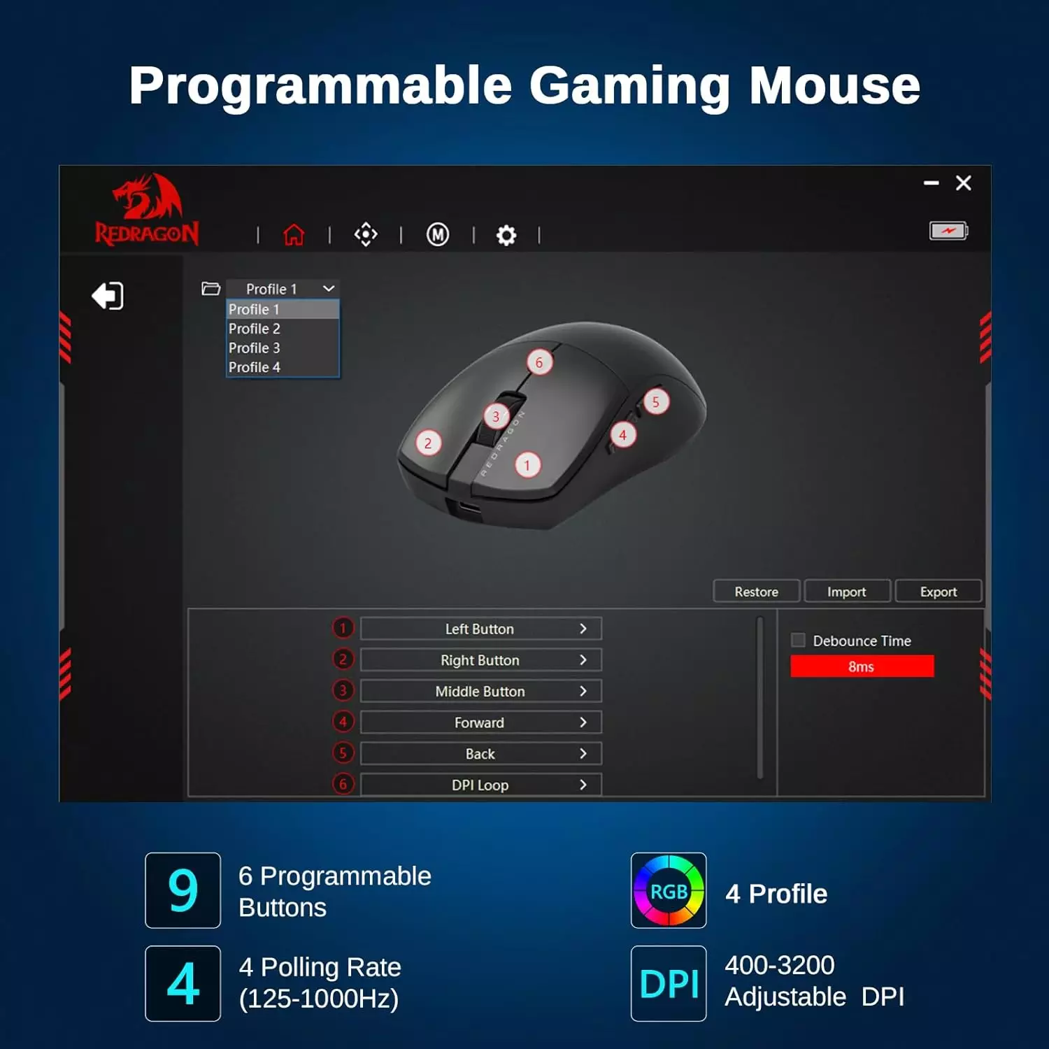 - PRO Driver Support – All buttons with hotkeys, media, DPI settings are all customizable with Redragon dedicated software