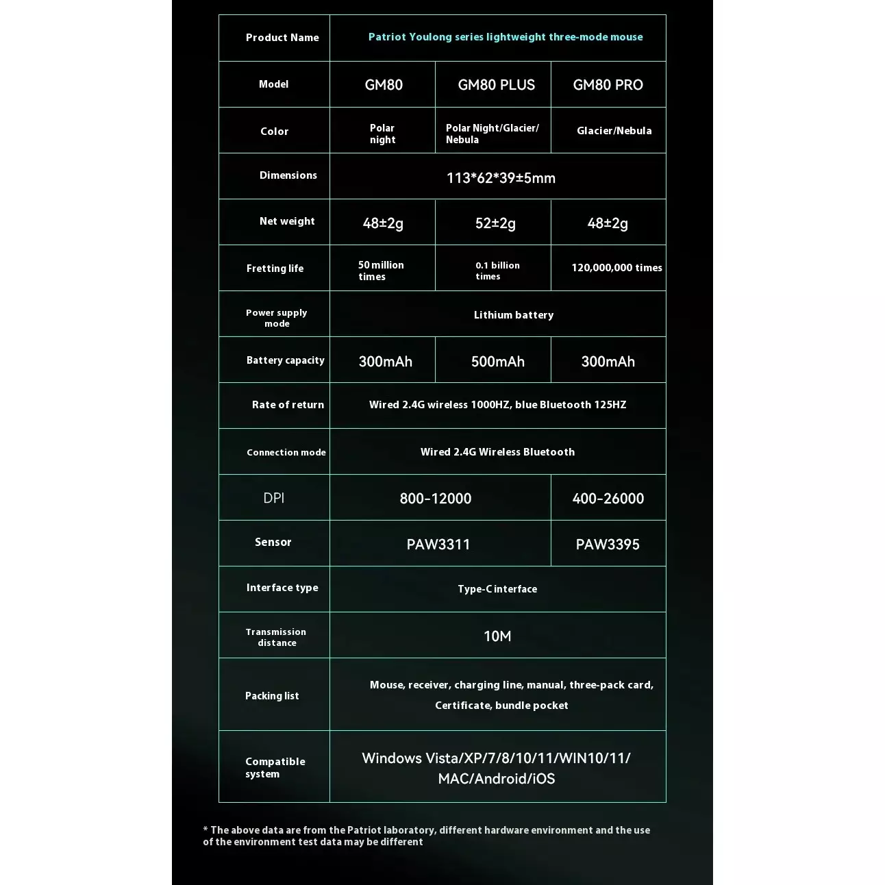 Ideal for Gamers and Office Users: GM80 PLUS is optimized for both professional gamers and busy office users. Ultra-lightweight Design (Only 52.2g): Its ergonomic structure does not fatigue the wrist and provides comfort during long periods of use. PAW3311 Sensor Adjustable Up to 12000 DPI: Offers full control with every click with fast and precise movements. Triple Connection Mode (Wired, 2.4G, Bluetooth): Establish a flexible and stable connection with any device, regardless of desktop, laptop or tablet. 6-Step DPI Level: Sensitivity can be adjusted from 800 to 12000 according to your usage habits. 100 Million Click Lifespan: Provides a reliable performance that you can use for many years with its durable key structure. Software-Supported HUB System: Easily manage key assignments, DPI settings and customization via software. Special Mechanical Internal Structure: Internal structure designed for sensitive feedback, soft click feel and long-lasting use.