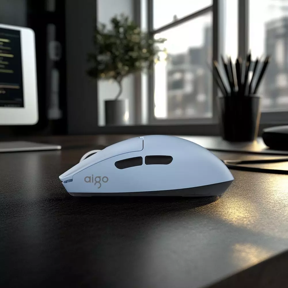 AIGO GM80 Plus 3 Mode Wireless, Bluetooth & Wired Gaming Mouse – 12,000 DPI Optical Sensor PAW3311 – Lightweight 52G – Polling Rate 1000 Hz (Blue)