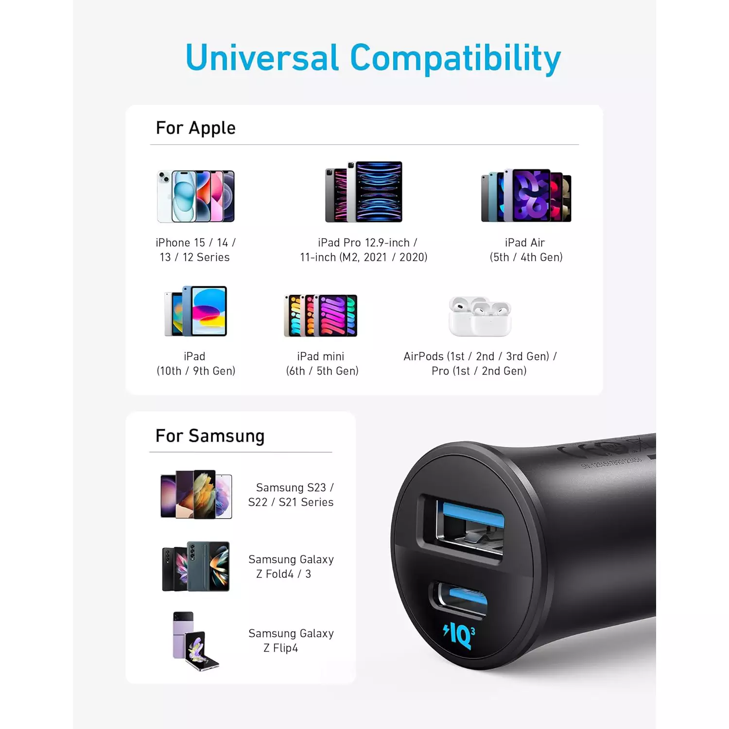 - What You Get: Anker Car Charger (30W, 2 Ports)