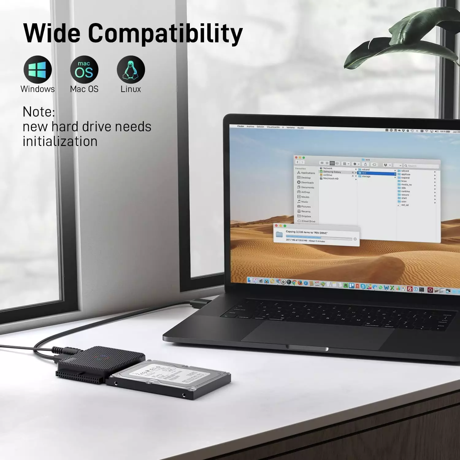 - 【Maximum 5Gbps Super Speed】FIDECO hard drive adapter is engineered with USB 3.0 port and can offer data transfer speeds up to 5Gbps. It can be also backward compatible with USB 2.0/1.1. Data transfer has never been so much easier and faster.