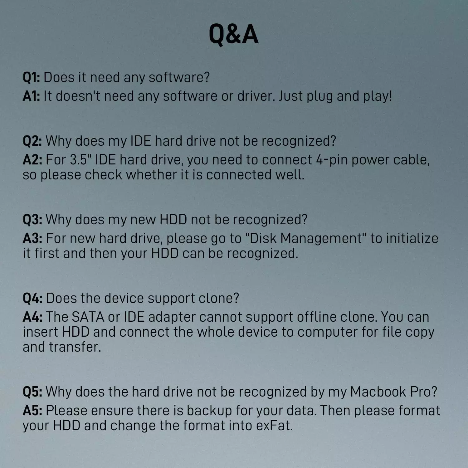 - 【Compatible System】FIDECO hard drive reader is widely compatible with Windows, Mac OS, and Linux. Just plug and play! No driver or software is needed!