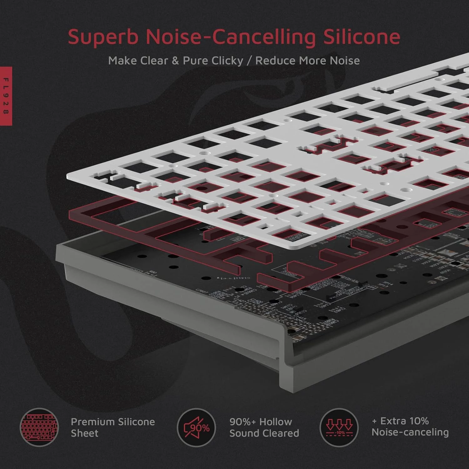 - 90%+ Hollow Sound Cleared — Built-in high-density sound-deadening silicone, equipped with the precise original pre-adjusted stabilizers. Maximize the elimination of rattly ping, reverb and hollow sound, make sure every single click on any key of FL980 is delightful.
