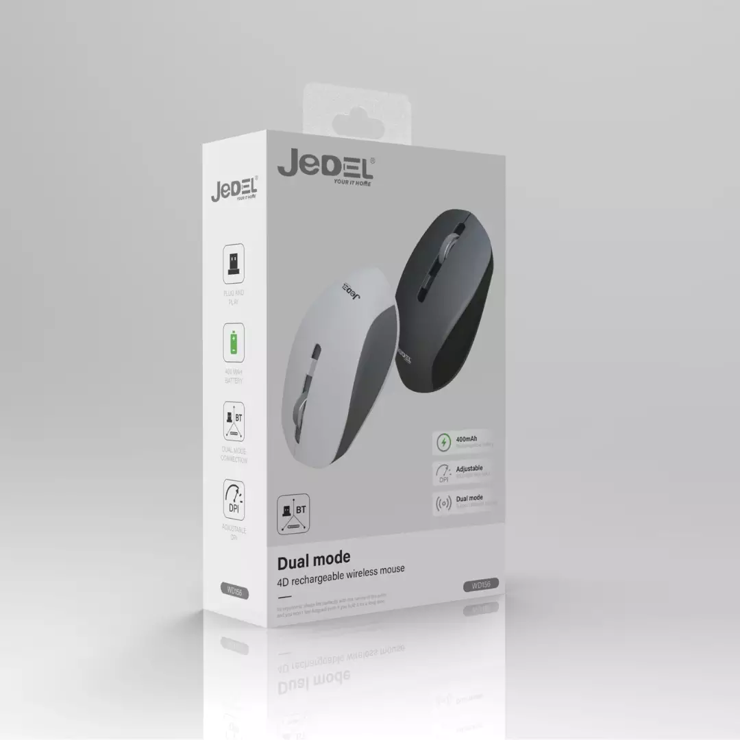 JeDEL WD156 Wireless 2.4Ghz , Bluetooth Rechargeable Mouse – Optical Sensor 1600 DPI – 4 Buttons (Black)