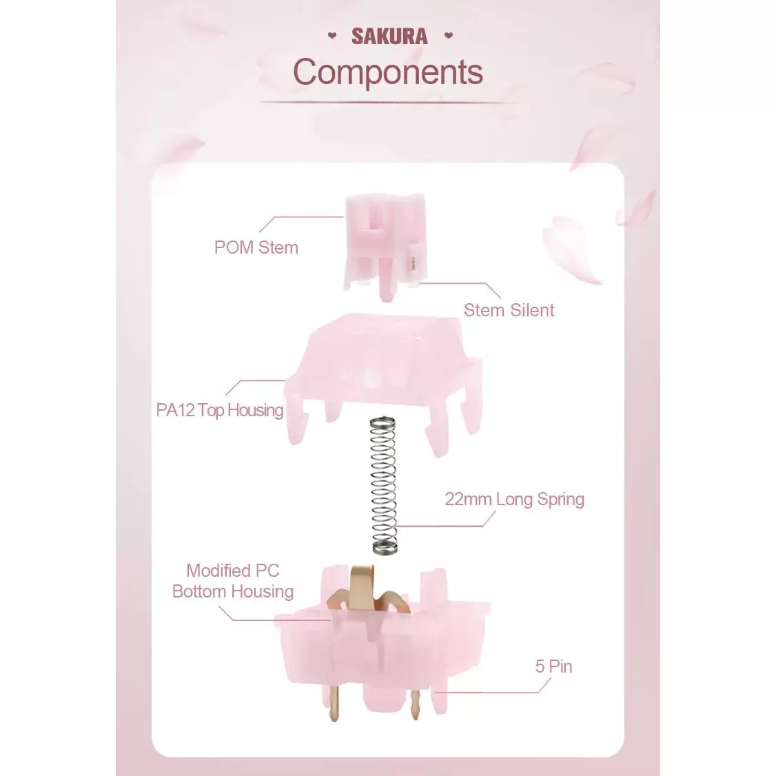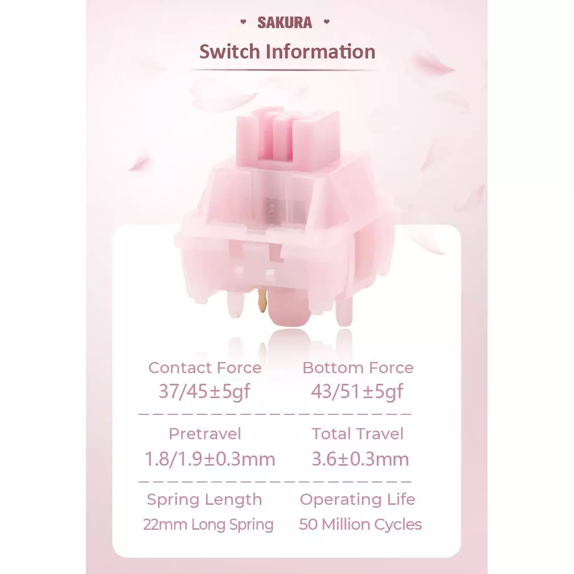 - Specification: Actuation Force: 50g,Bottom-out Force: 65g ,Pre-Travel: 2.2mm ,Total Travel: 4.0mm, Lifespan: 40 million keystrokes