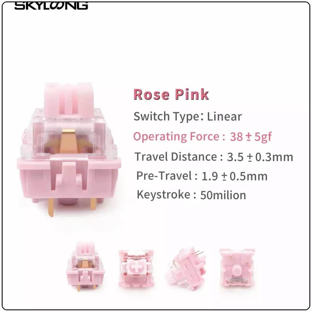 KTT Rose Pink Switches, 3-Pin Linear 38gf Dustproof Key Switches For Redragon T-DAGGER Keyboard (Pack 35)