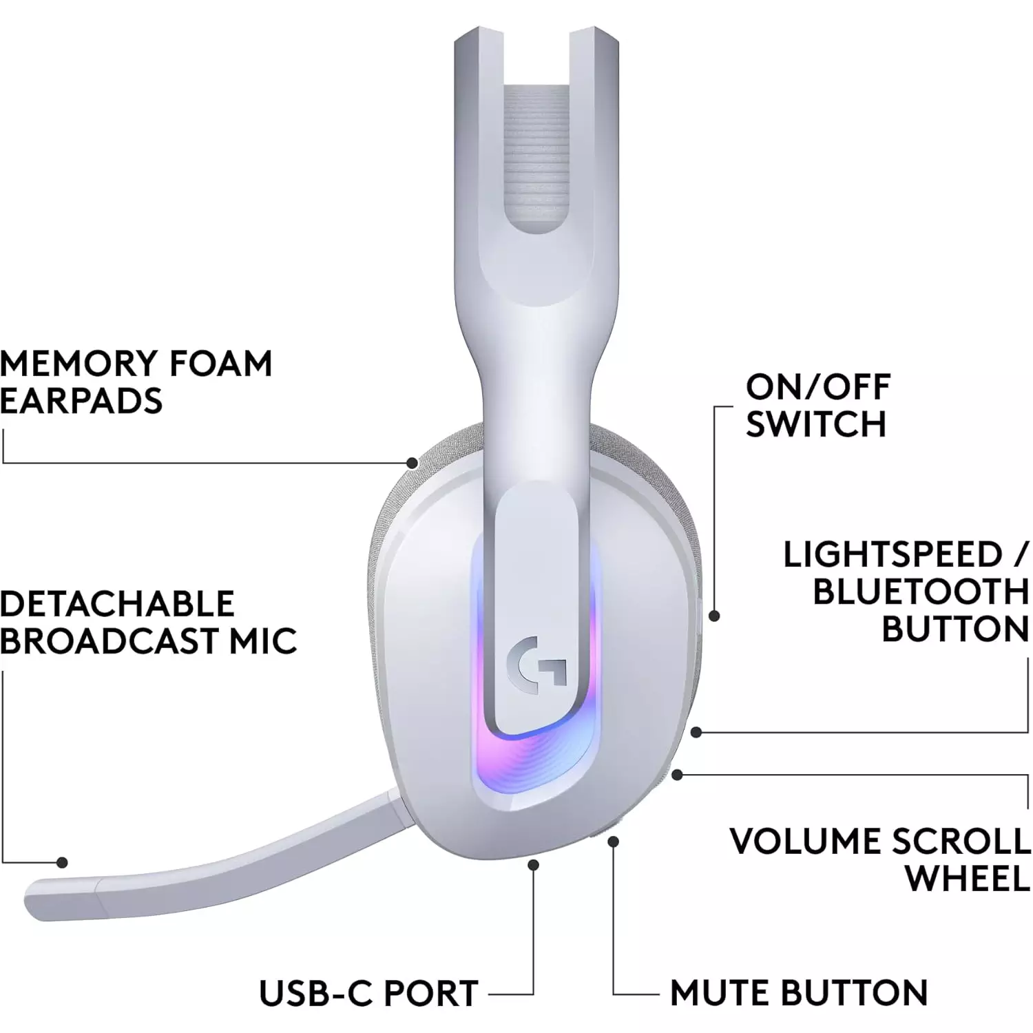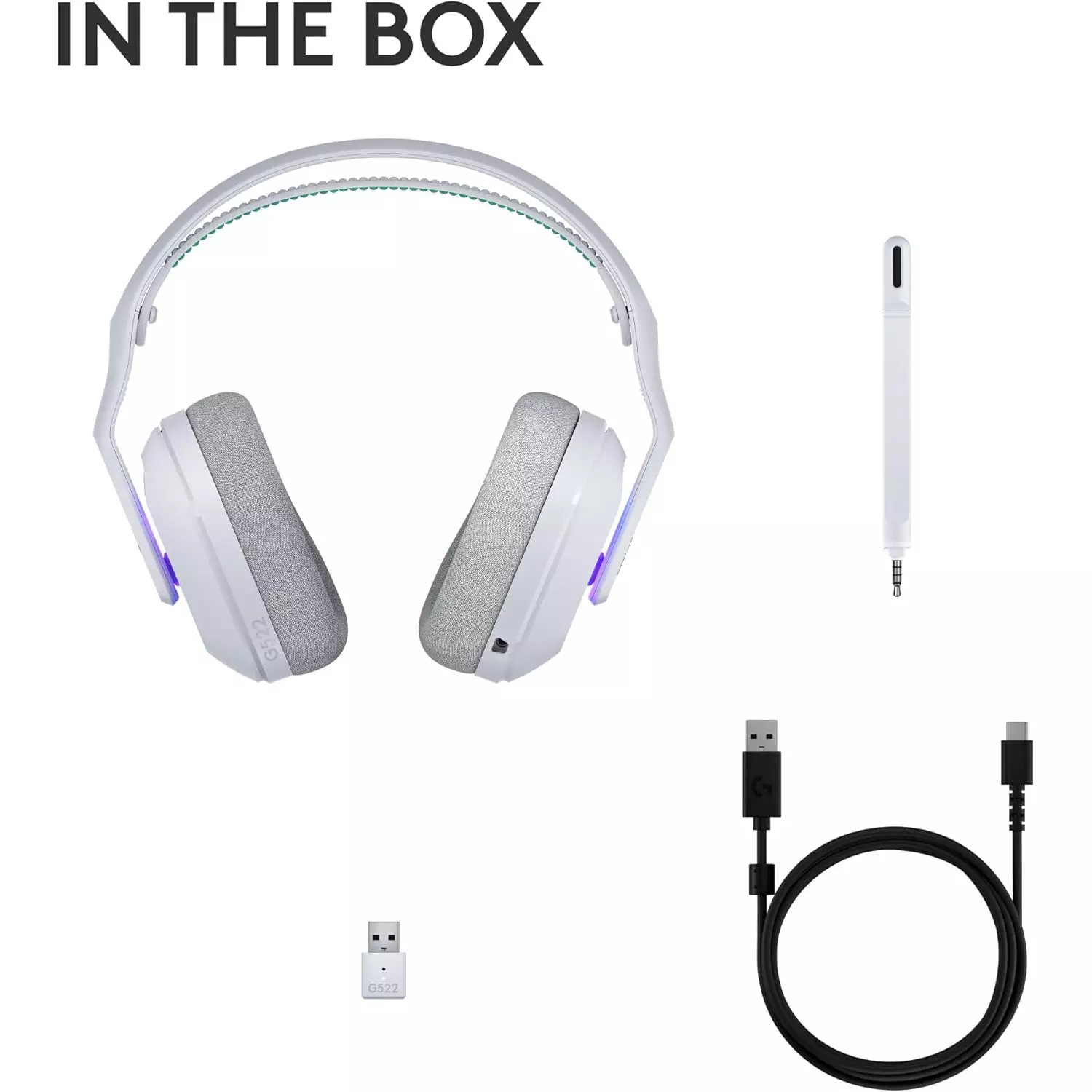 Logitech G522 Tri-Connectivity with LIGHTSPEED, Bluetooth, USB Gaming Headset, LIGHTSYNC RGB, Full Bandwidth Mic & Advanced Synchronised Audio (White)