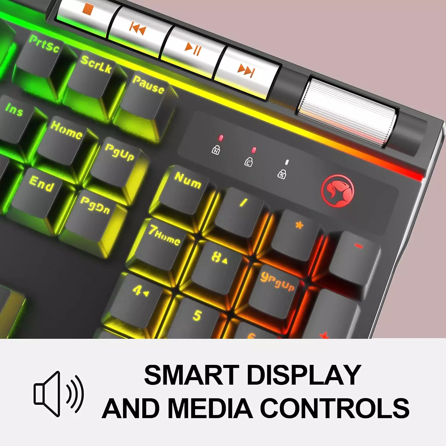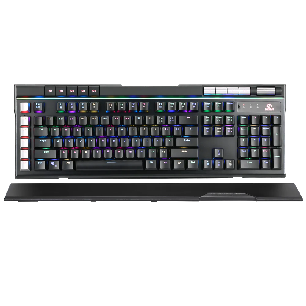 MARVO KG965G RGB Gaming Mechanical Keyboard – OUTEMU Blue Switch – Volume Wheel & Media Keys – Aluminium Frame – 2 USB Passthrough Port – Detchable Wrist