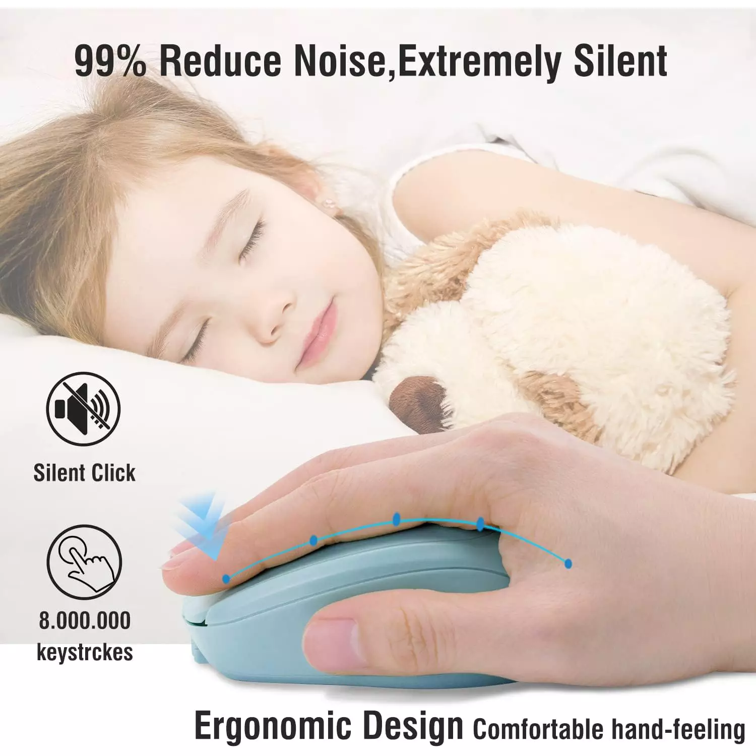 Nengshi M256 Dual Mode Wireless, Bluetooth Silent Click Mouse – Optical Sensor 1600 DPI Rechargeable USB C (Blue)