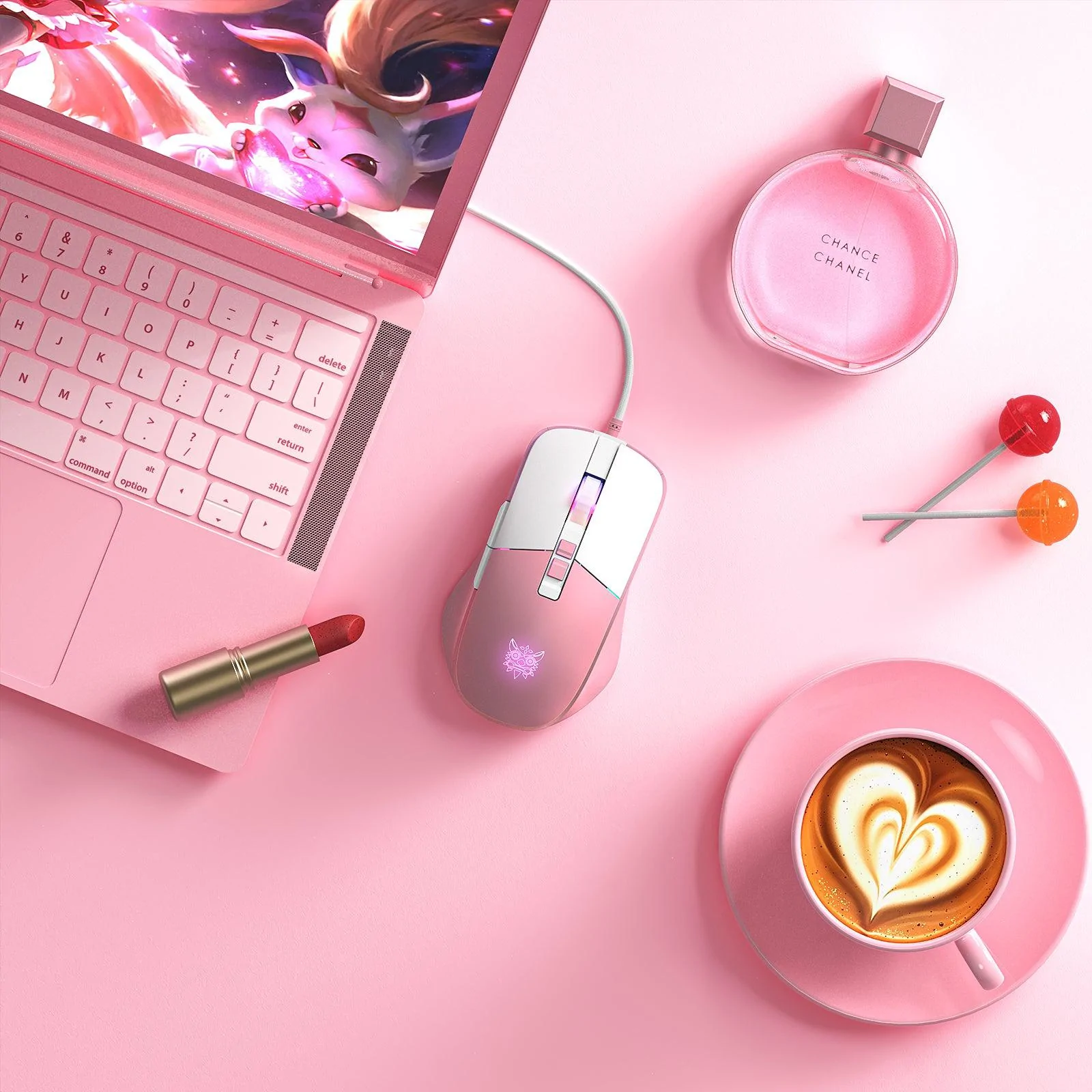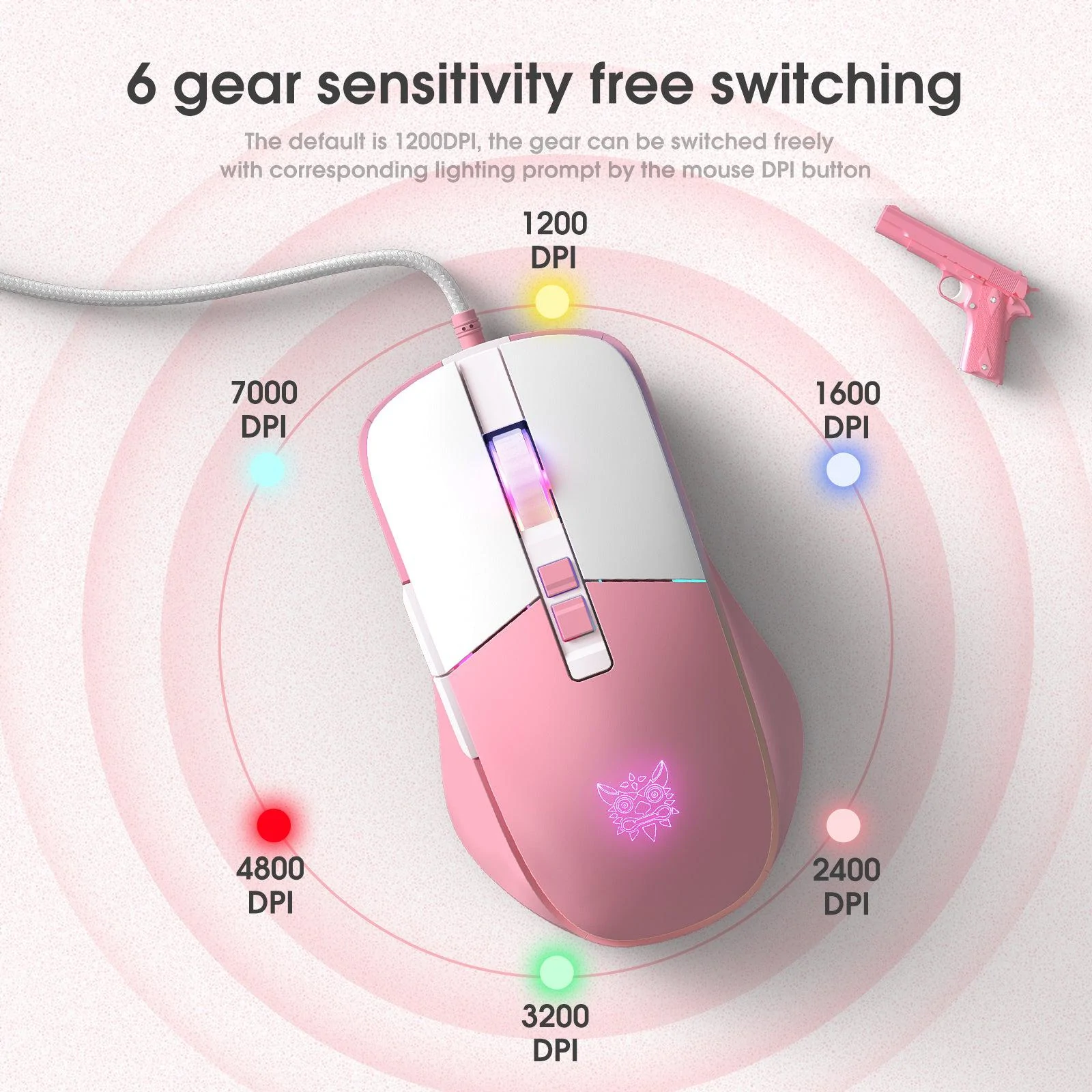 ONIKUMA CW916 Gaming Mouse – 7,200 DPI (Pink White)