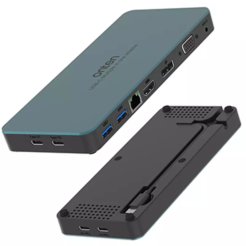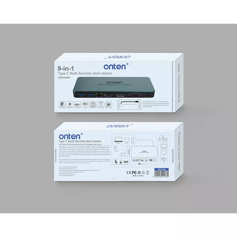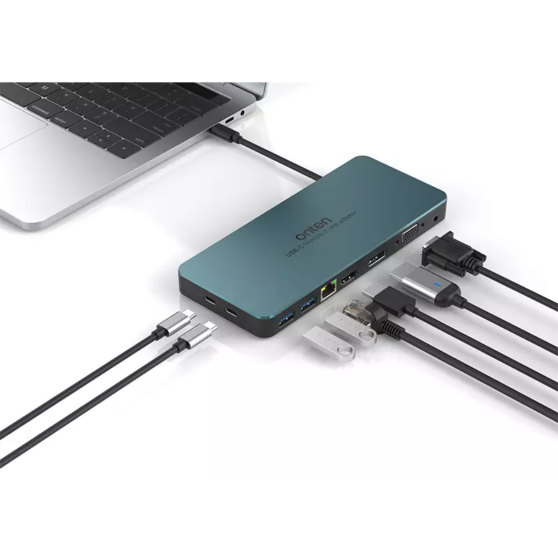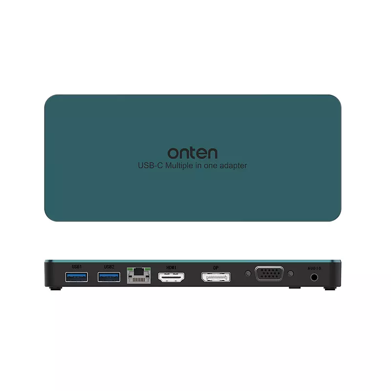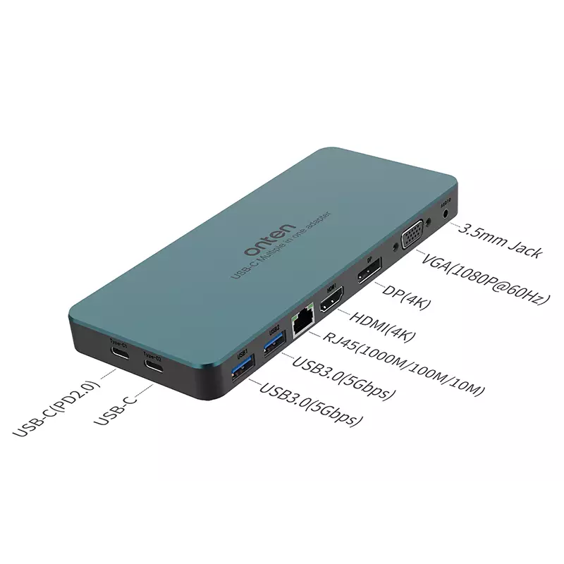 ONTEN 9188s USB-C Docking Station 9-in-1, VGA 1080P@60Hz, Displayport 4K, HDMI 4K, 3.5MM Jack, RJ45 1000M, USB 3.0 X2, USB-C Data, USB-C PD 3.0 @100W