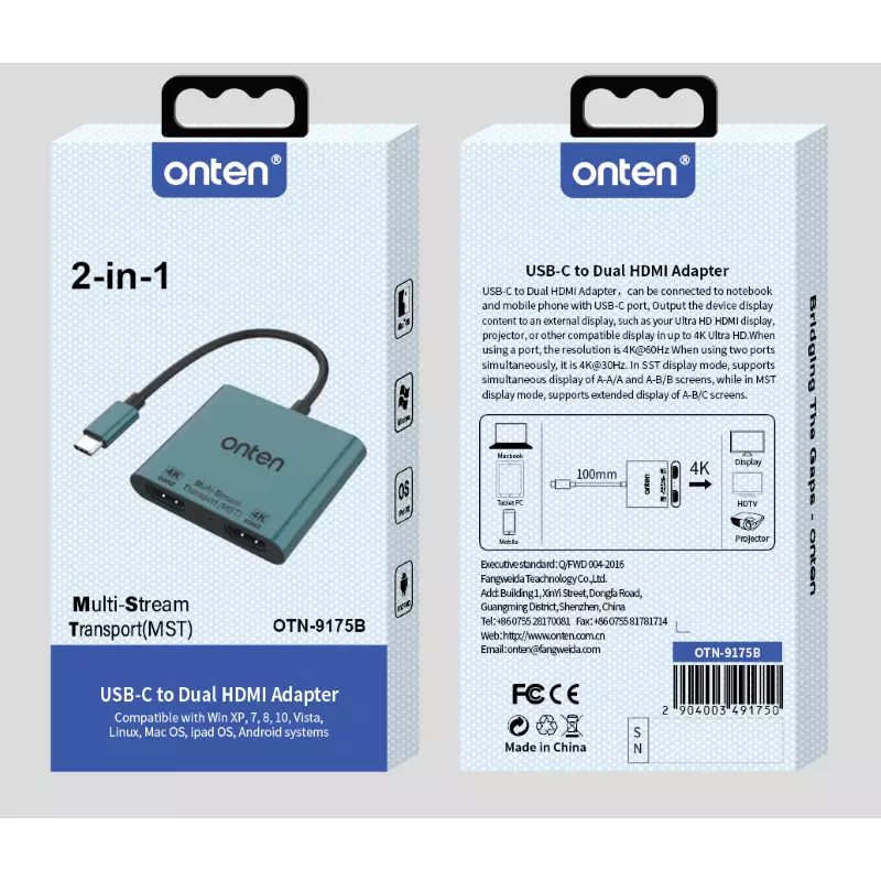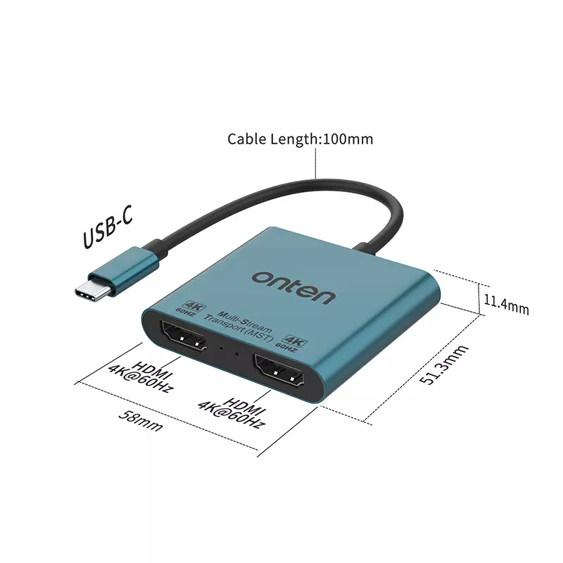 ONTEN USB C to Dual HDMI adpater 4K@60HZ. USB Type c to Dual Monitor MST Converter.Compatible with thunderbolt3/4 MacBook Pro/Air, iPad Pro and More