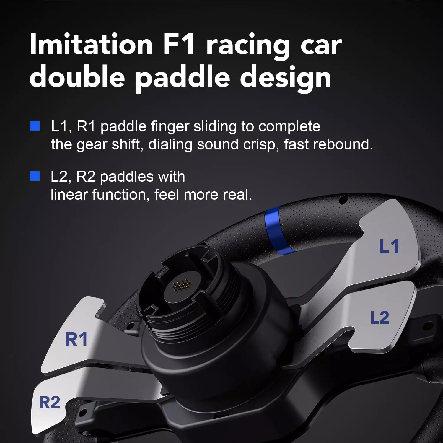- Excellent Plate Design: 300mm large Plate, comfortable to hold, the plate body supports 270 * 900 degrees one button to switch, 900 degrees can be rotated two and a half turns, consistent with the car plate. Steering wheel detachable structure design, activate the racing genes to release the passion of the track. Imitate Formula’s paddles design, it shifts gears and drifts in one fell swoop