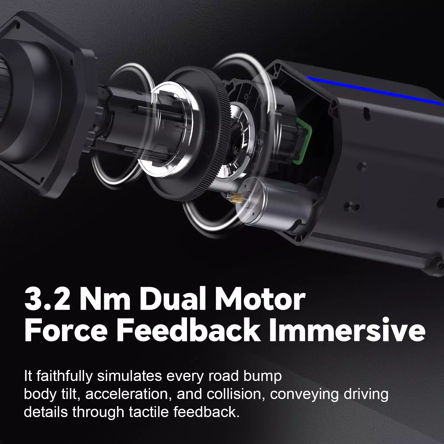 - Steering Wheel with Force Feedback: PXN V99 racing wheel have 3.2Nm dual-motor force feedback, allowing you to clearly perceive the force feedback information of the vehicle movement and environmental interaction, to simulate every bump in the road, body tilt, acceleration, collision, and to convey driving details through the sense of touch.