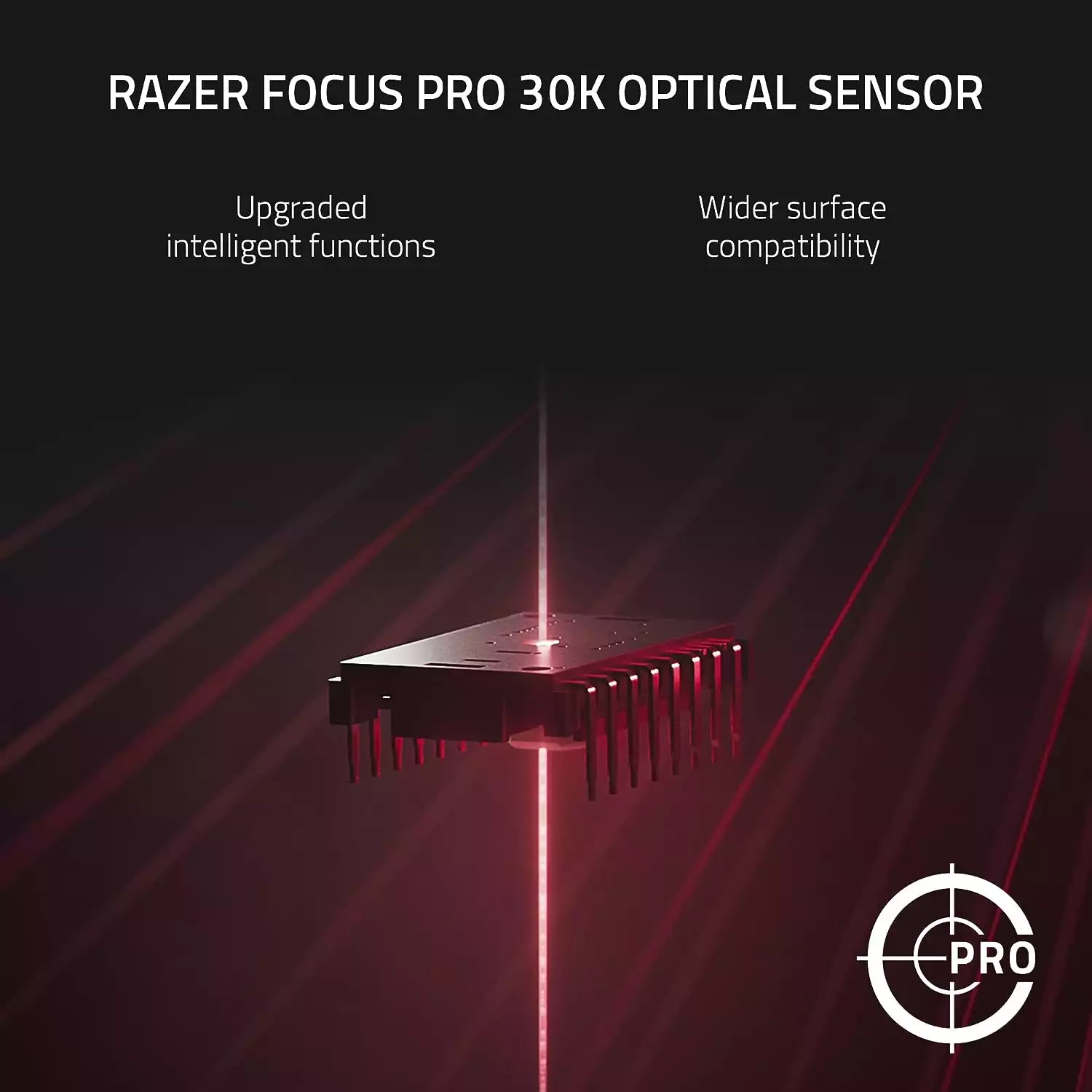 - Focus Pro 30K Optical Sensor: Razer’s brand-new sensor provides flawless tracking performance on a wider variety of surfaces including glass—supported by intelligent functions for enhanced aim and control