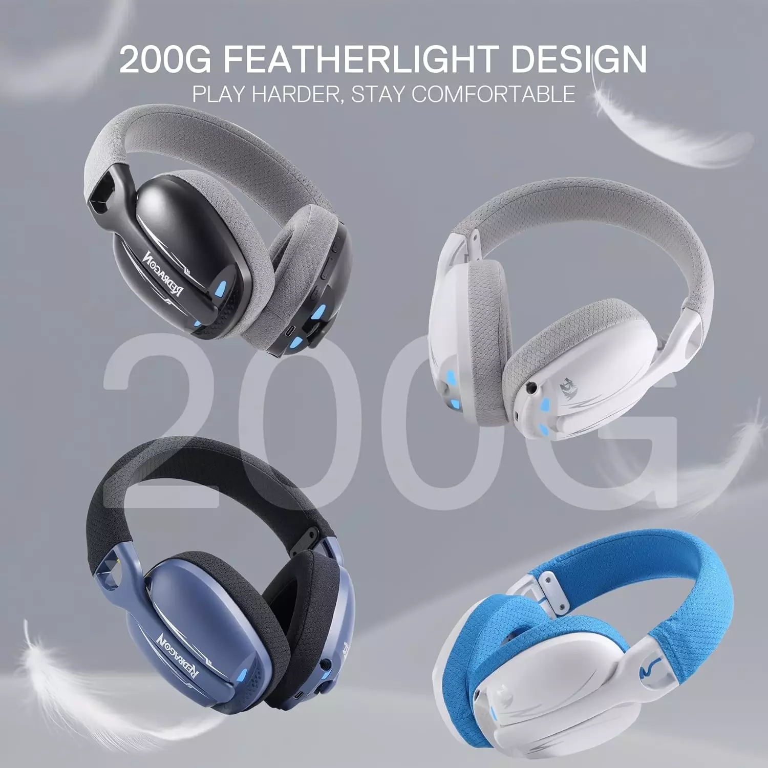 - Lightweight Comfort – Weighing only 200g (7.05 oz), the H878 wireless gaming headset offers all-day comfort and reduces head pressure. Its soft memory foam padding enhances sound quality, while breathable earcups keep your ears cool during long sessions.