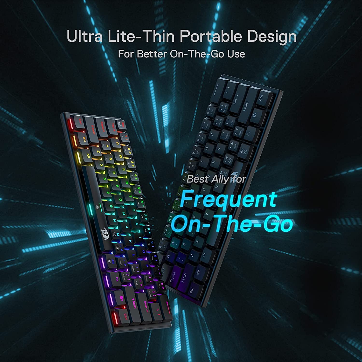 Standard 60% compact layout with 14.8 oz lightweight combo, makes it a perfect fit to on-the-go use. Save your luggage space and weight, terrifically suitable with portable laptops.