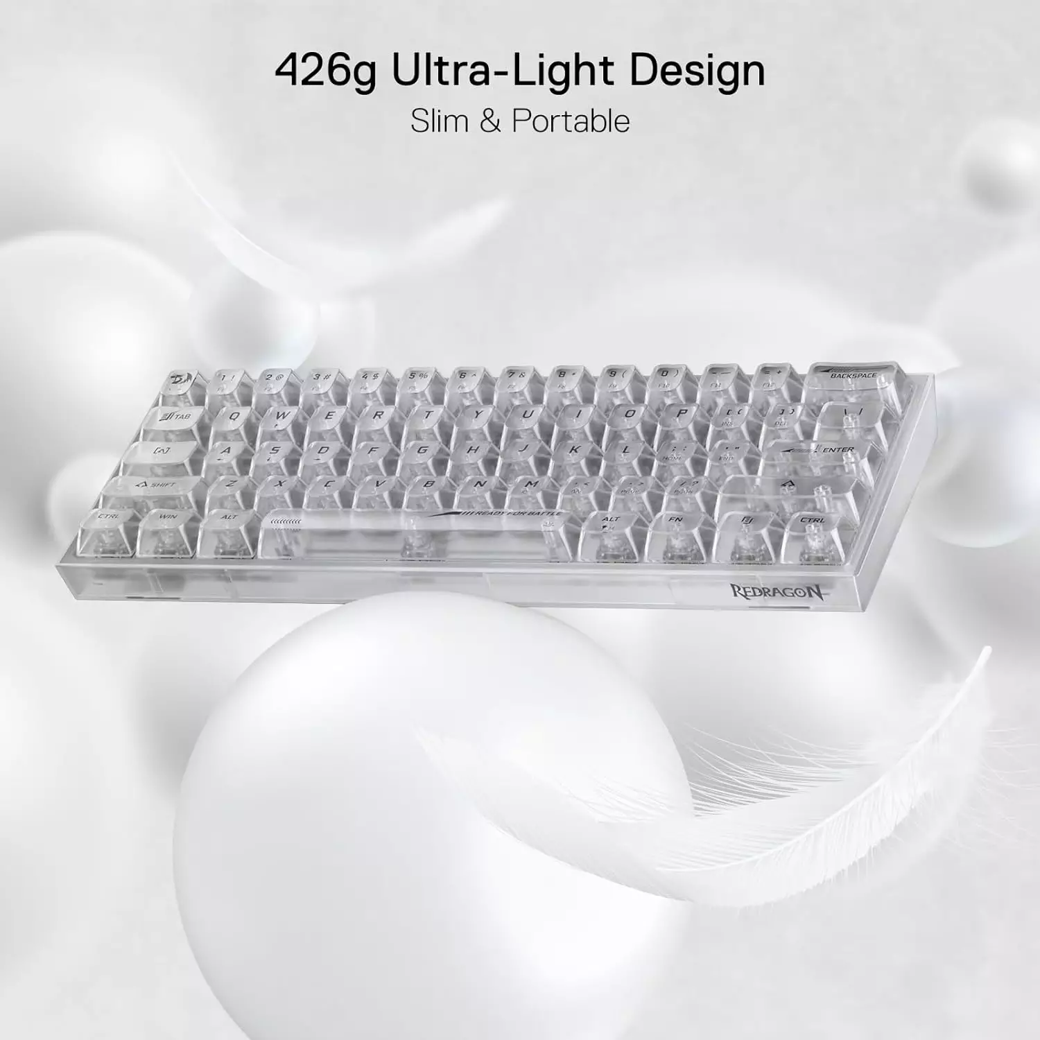 REDRAGON K617 SE Fizz RGB 60% Gaming Mechanical Keyboard – Custom Linear Switch (White Transparent)