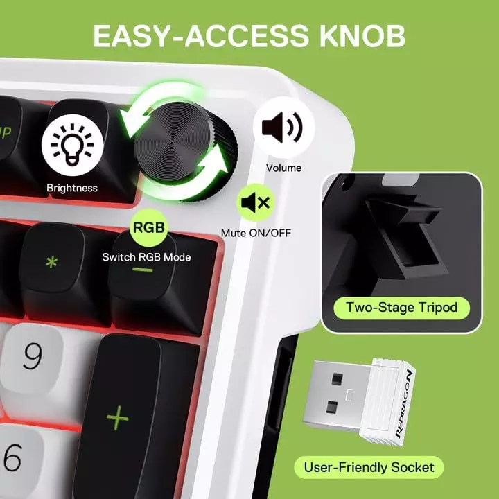 - ONE-Knob Control – Armed with a convenient easy access control knob, the keyboard backlight brightness and media (volume, play/pause, switch) are all in control with no hassle. Plus functionary with no extra keys or space to waste.