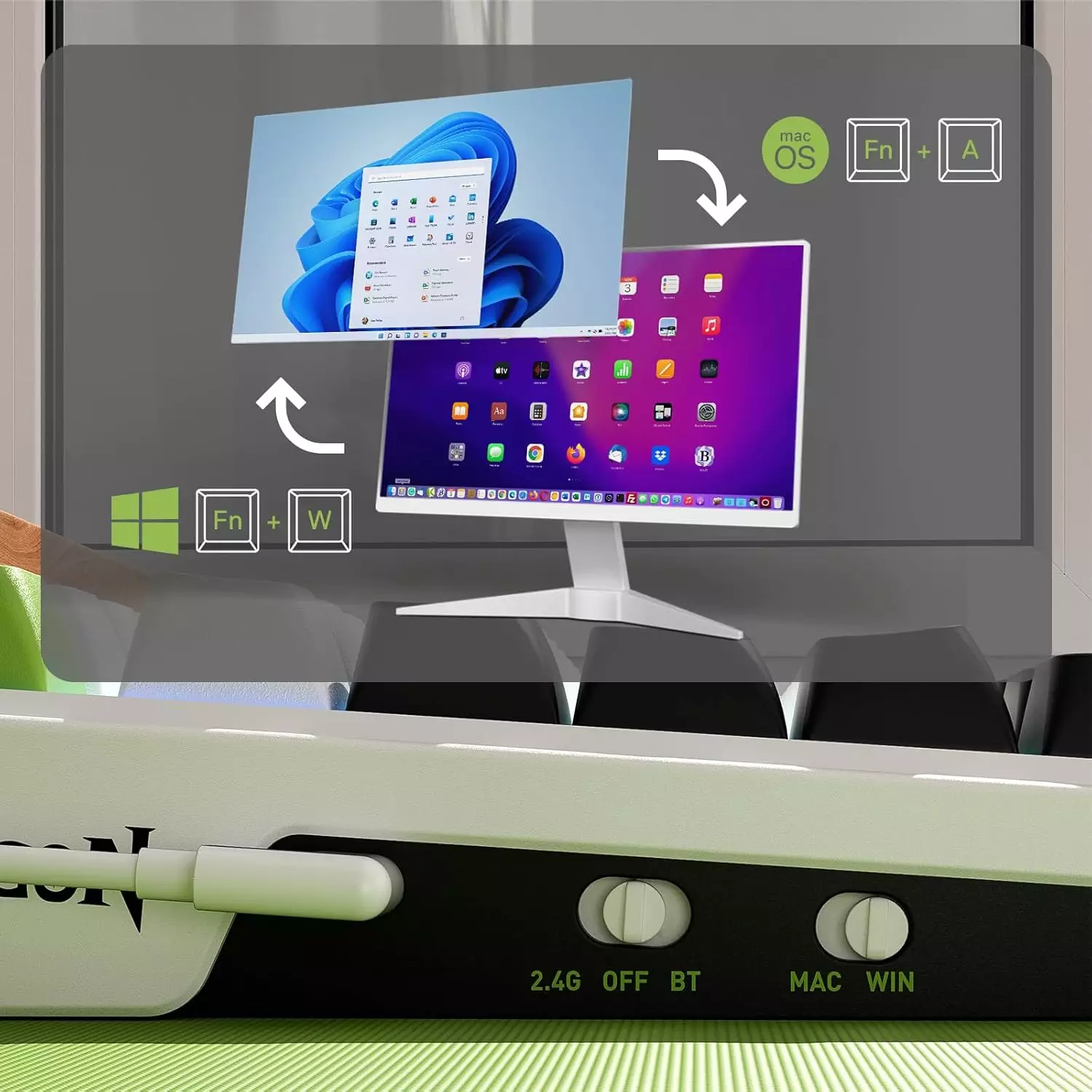 Dual main systems supported, essential Windows combined with 100% fully fits Mac OS. Working & gaming, change at ease via the side slide switch.