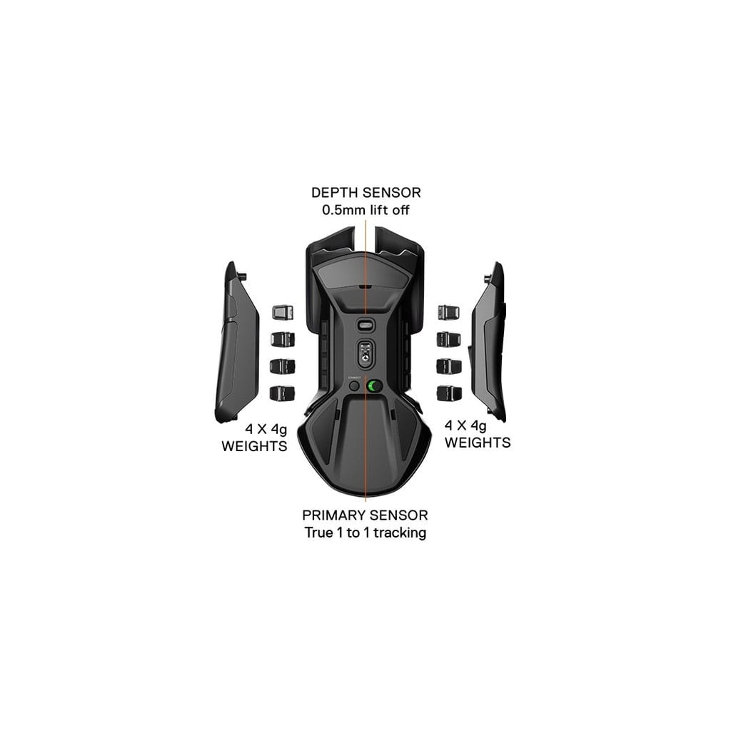 The all new center of gravity tuning system includes moveable weights and light-to-heavy customization, delivering the widest range of adjustment of any gaming mouse.