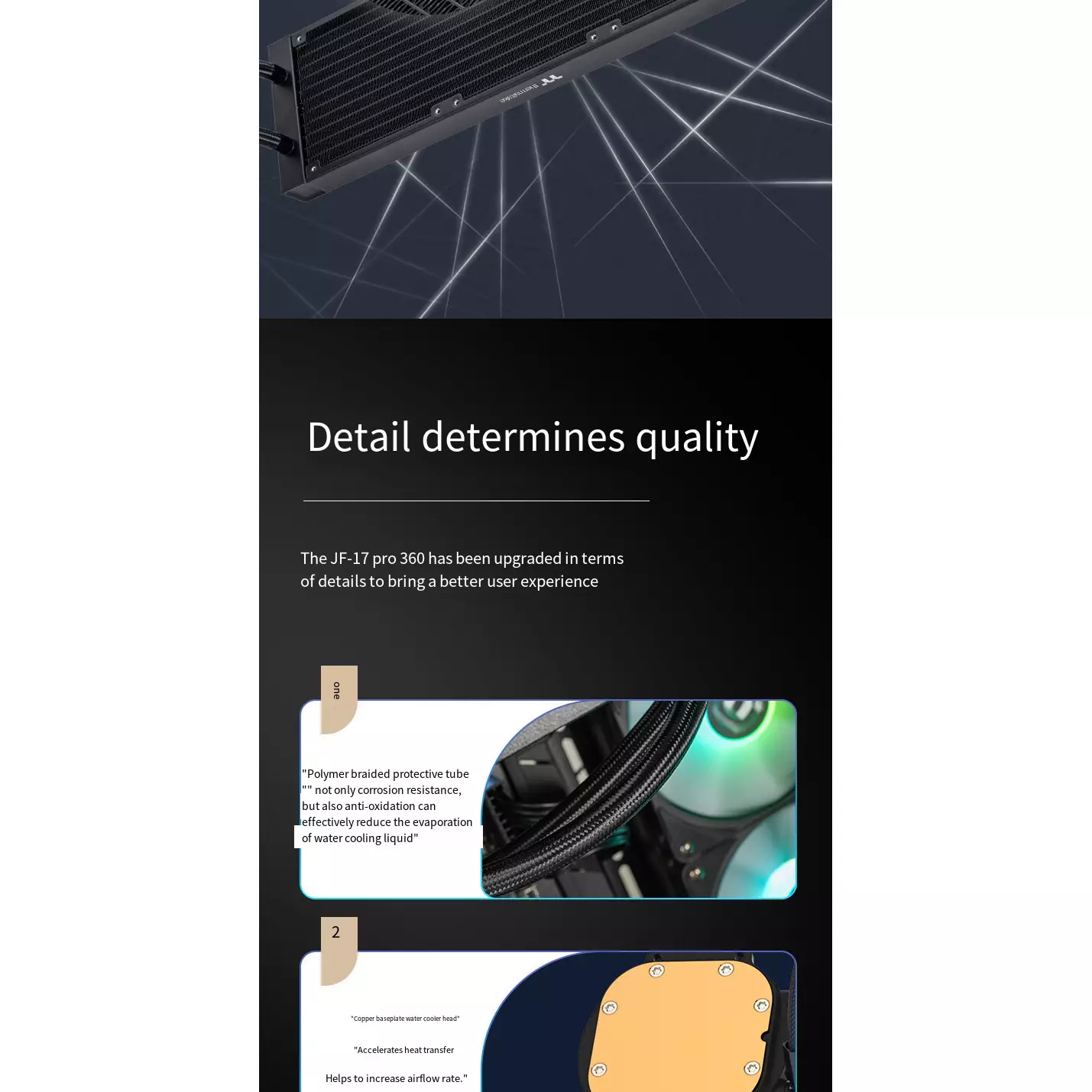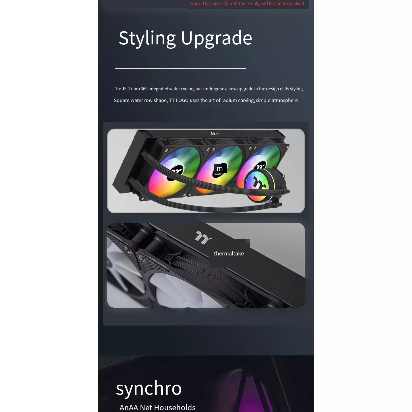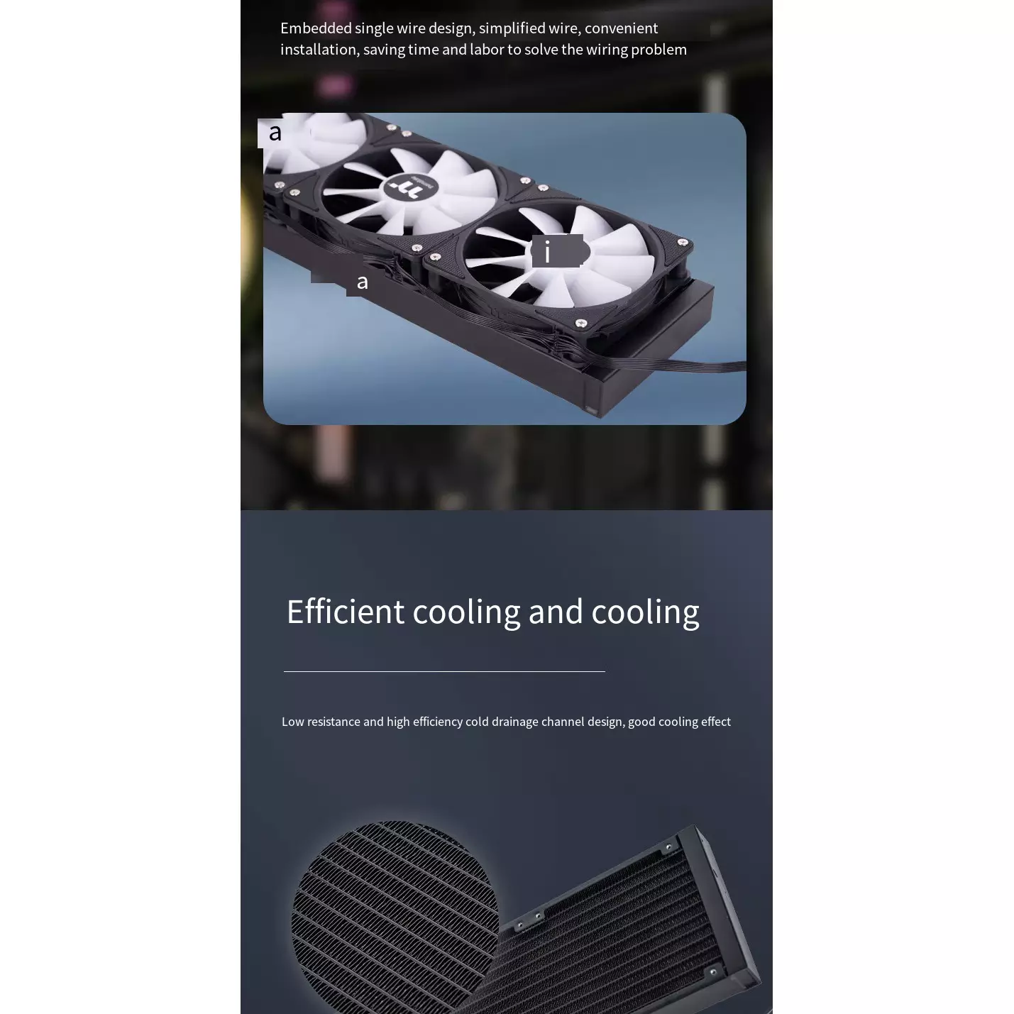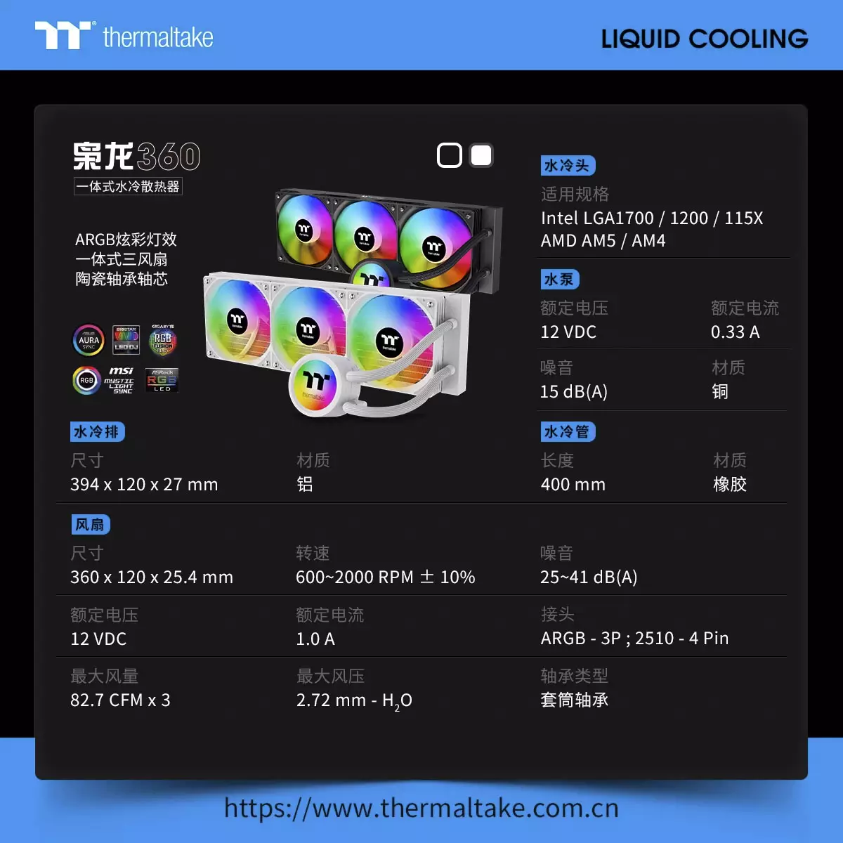 PRO360 all-in-one CPU water-cooling radiator. The radiator is available in black and white. The so-called “limited” means that the cold head of this radiator has a two-dimensional pattern generated by Thermaltake using AI.