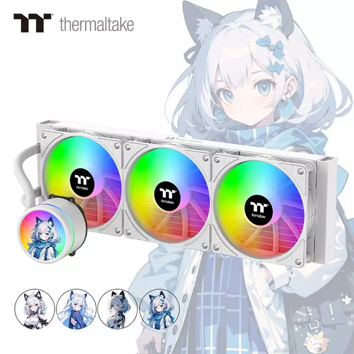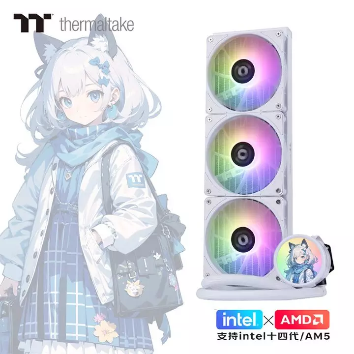 the radiator is equipped with an RGB water cooling head, with four AI-generated two-dimensional anime patterns to choose from, and supports motherboard application software from ASUS, GIGABYTE, MSI and other motherboards to control the lighting.